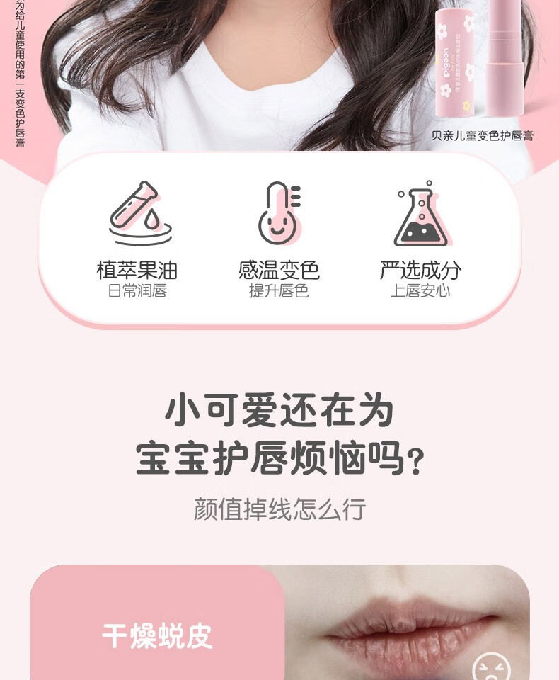 贝亲儿童变色护唇膏(无香型)3.8g