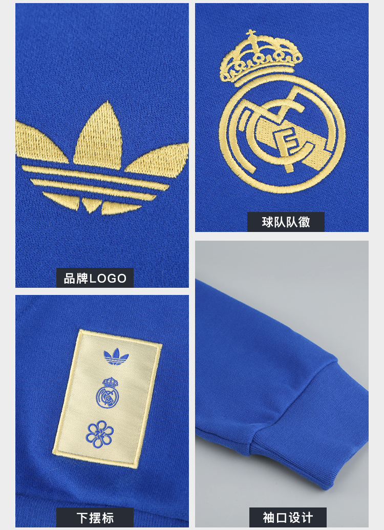 小李子ADIDAS阿迪达斯皇马足球运动休闲连帽卫衣成人男JZ2237