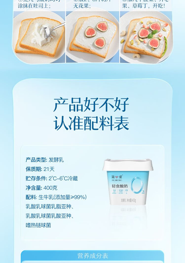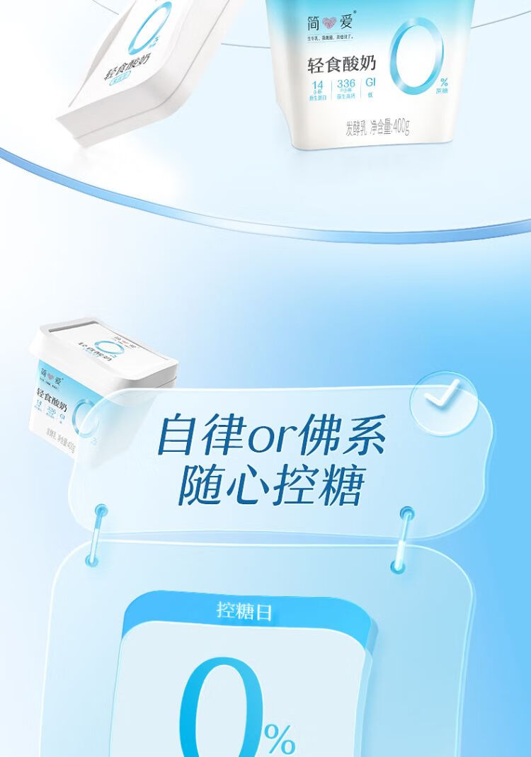简爱轻食酸奶4%蔗糖400g/杯