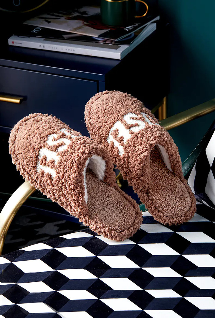 朴西毛绒字母棉拖鞋PS3710冬季潮流一家三口保暖