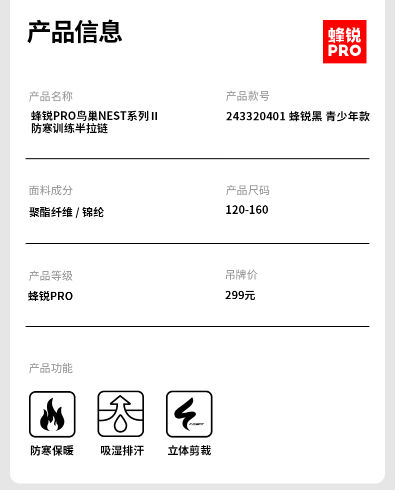 小李子蜂锐FUNRY鸟巢2代青少年半拉链夹棉防寒杜邦棉保暖设计师联名