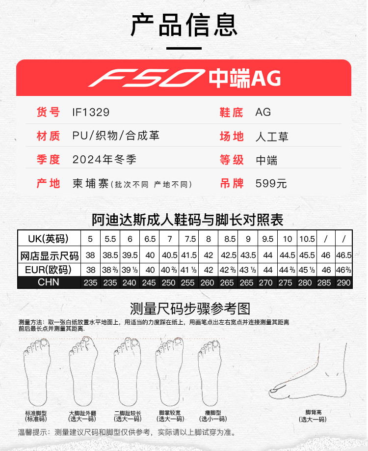 小李子ADIDAS阿迪达斯F50中端中国版AG短钉成人足球鞋男IF1329