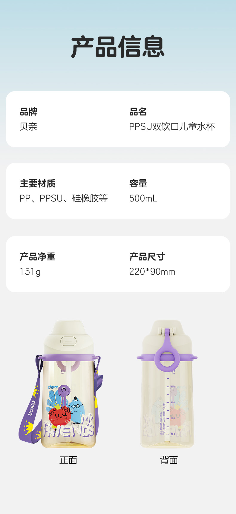 贝亲3岁+双饮口PPSU儿童水杯