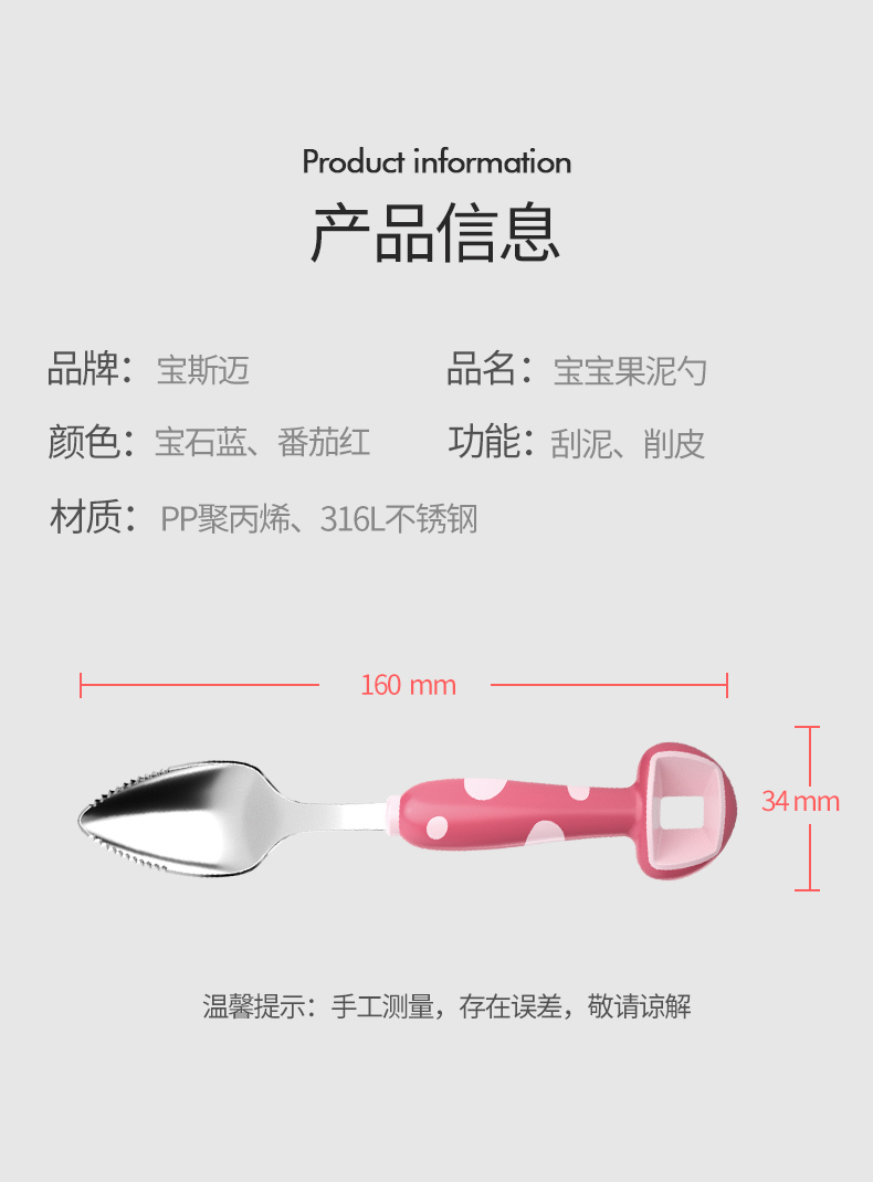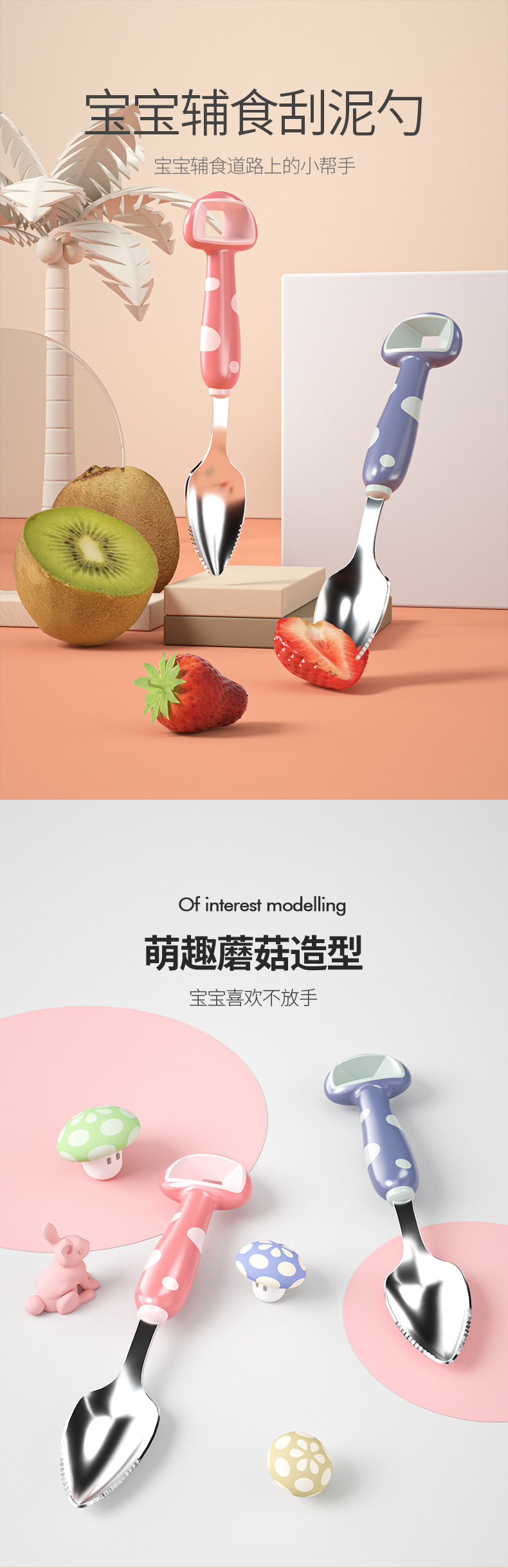 宝斯迈小蘑菇果泥勺1支装(颜色随机发货)