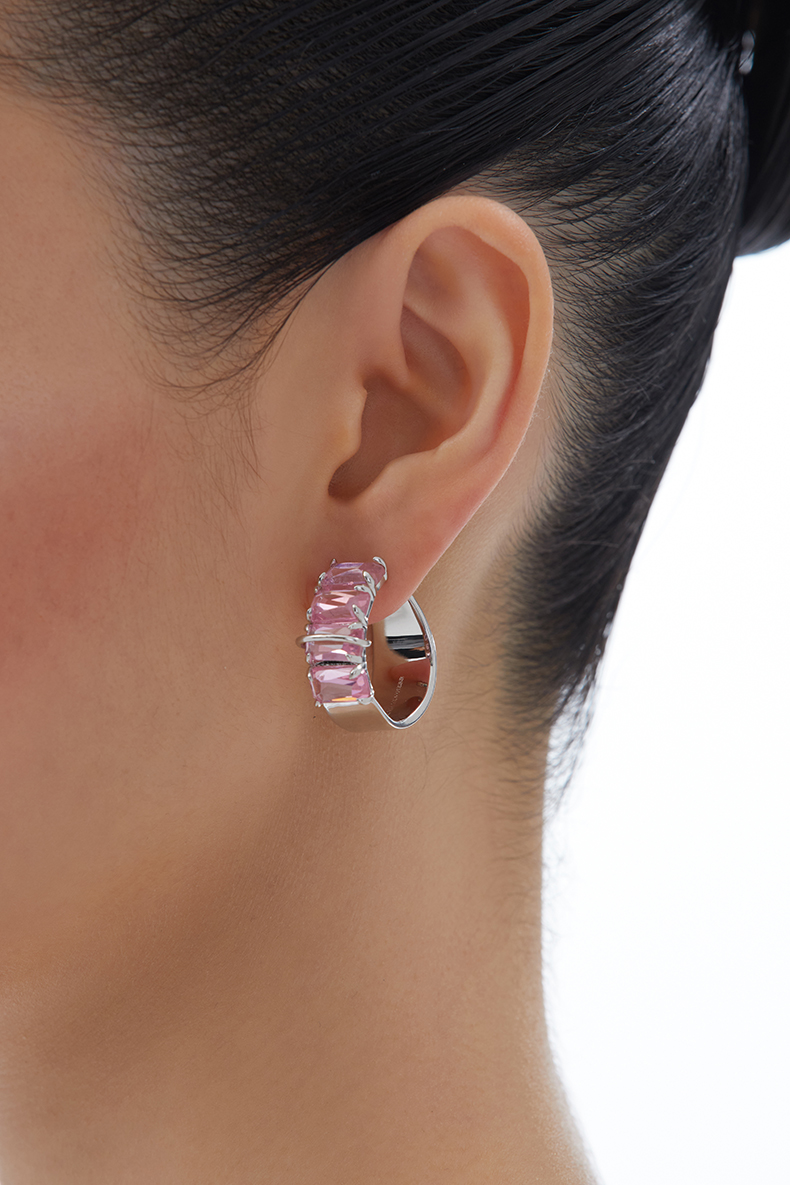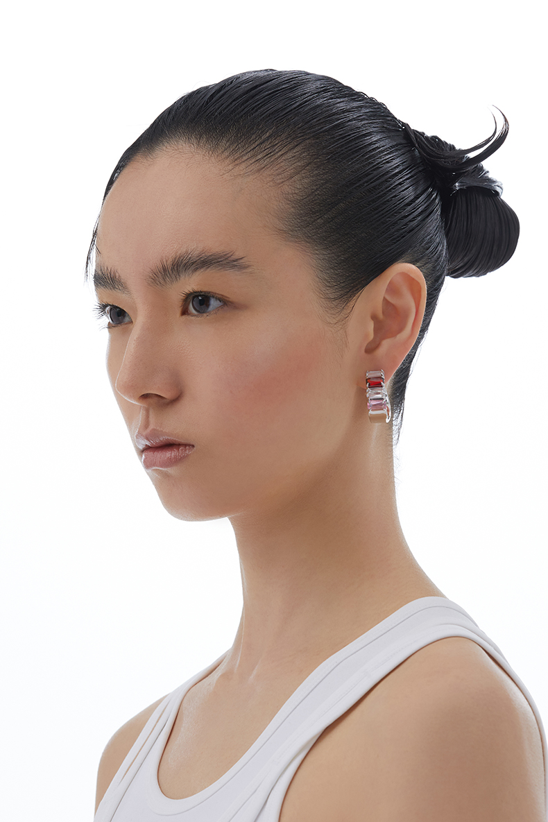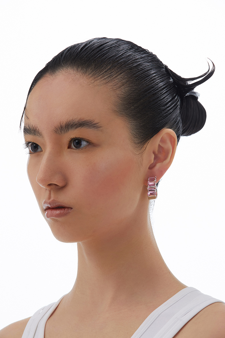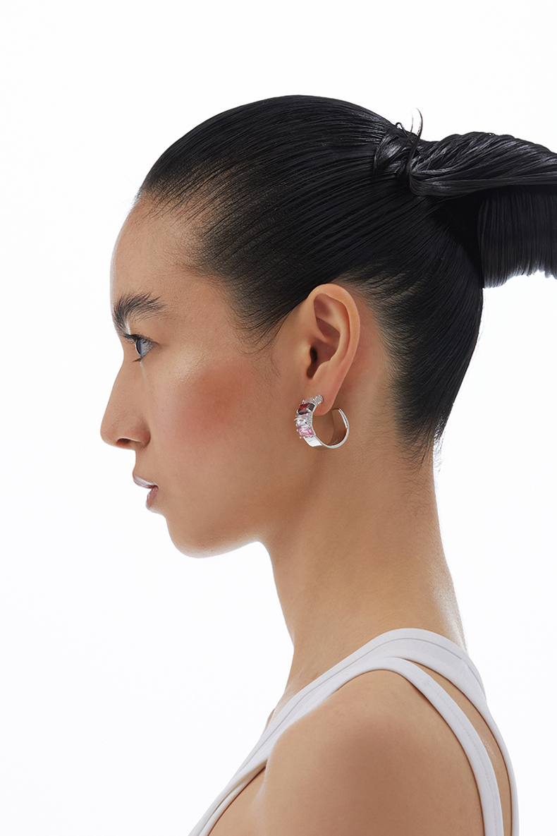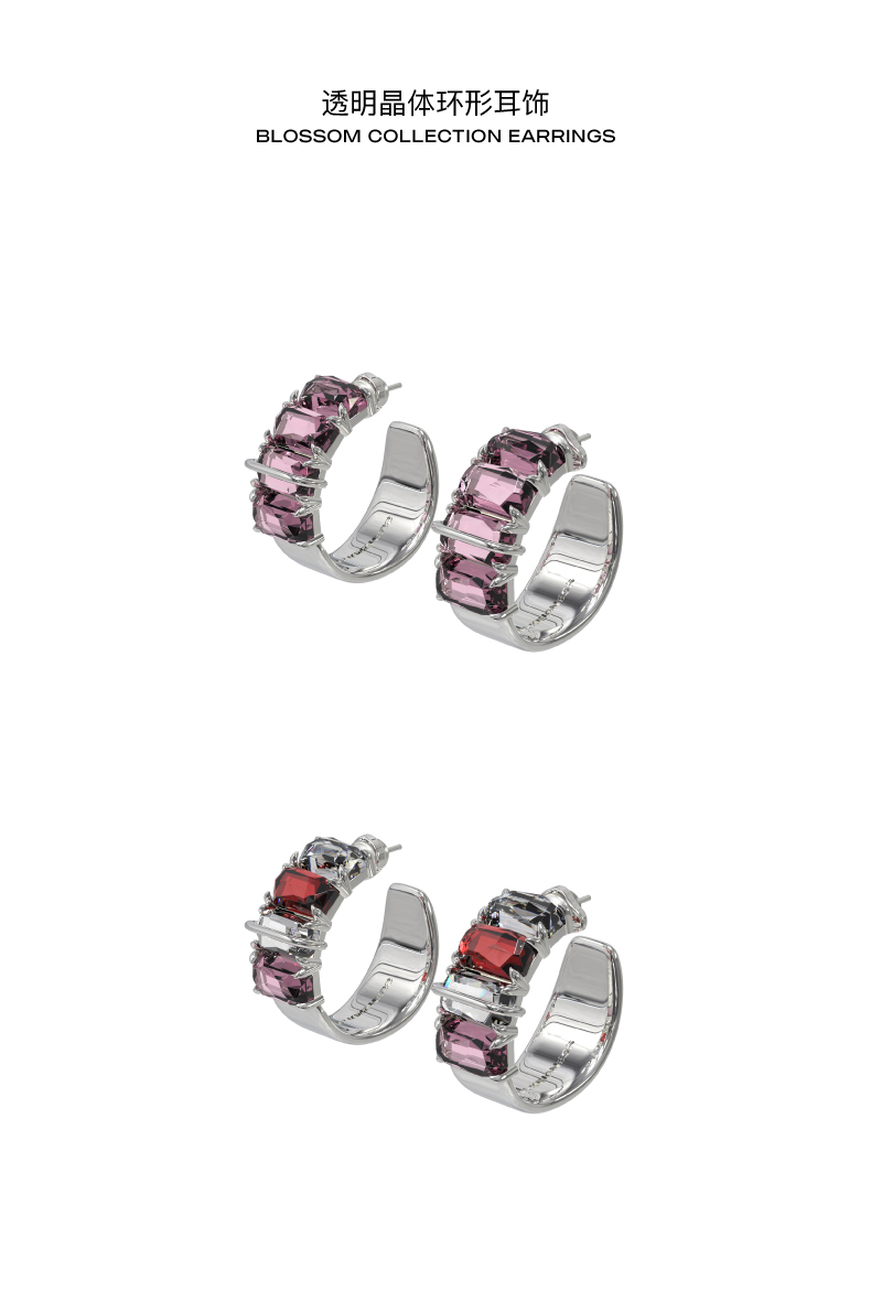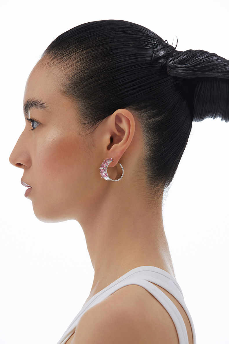 KVK耳环2021年新款桃花潮透明晶体环形耳饰小众设计感情人节礼物
