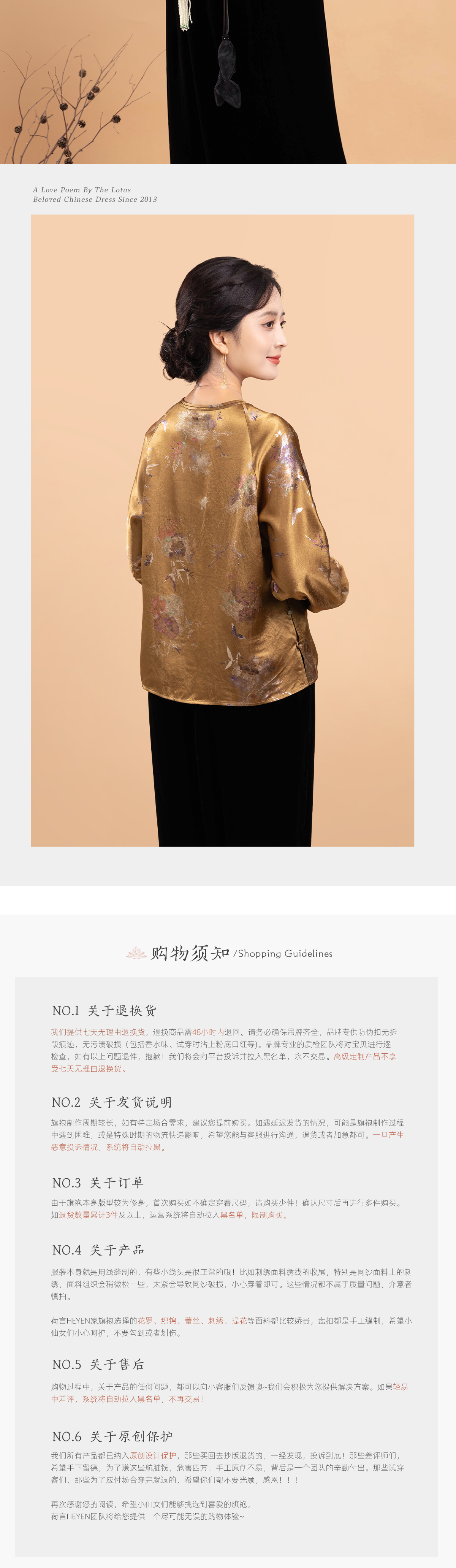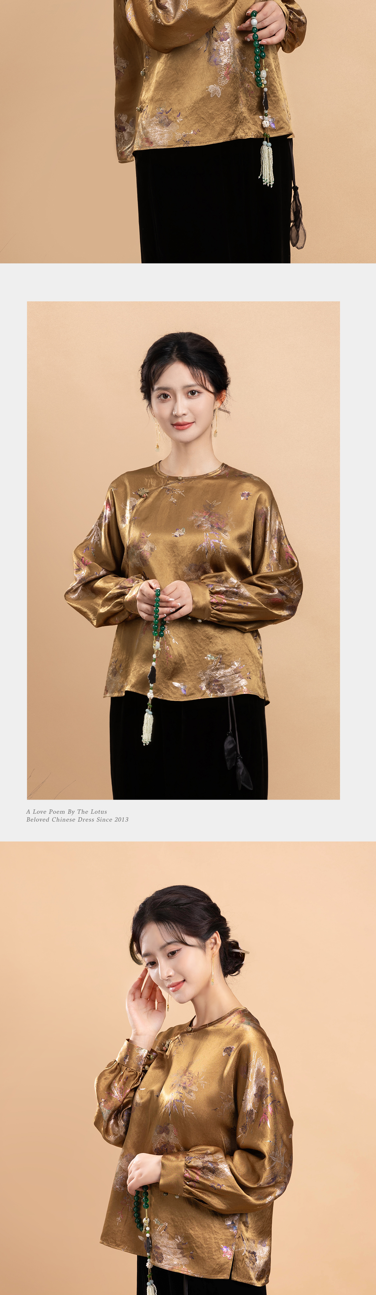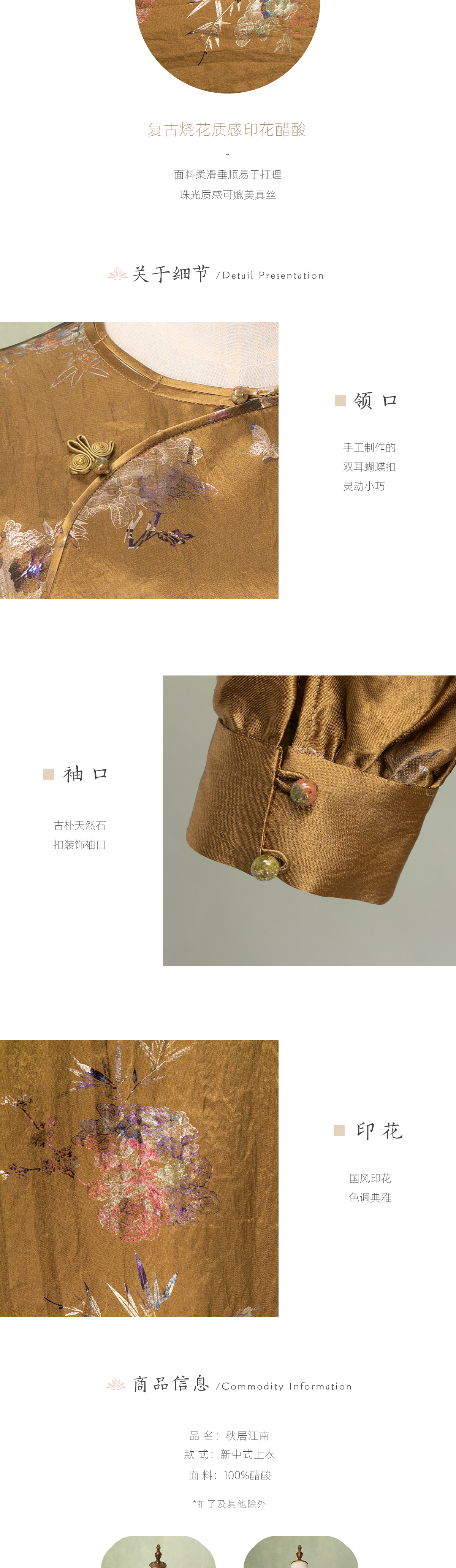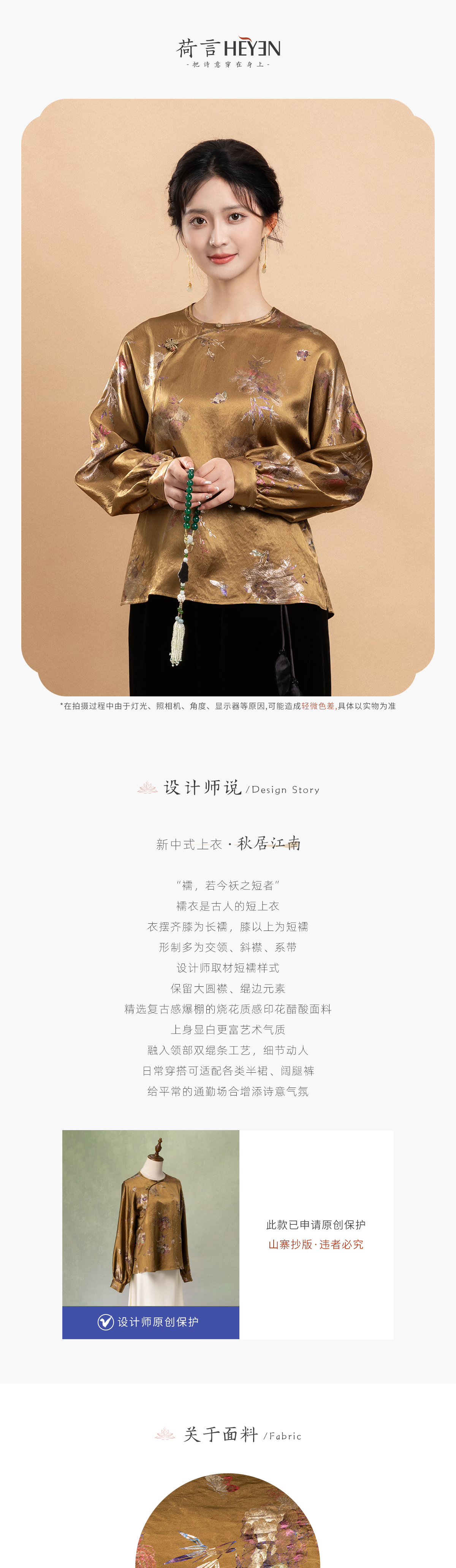 荷言GL 秋居江南 复古烧花质感印花棕黄色上衣复古蝴蝶盘扣