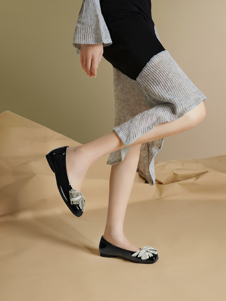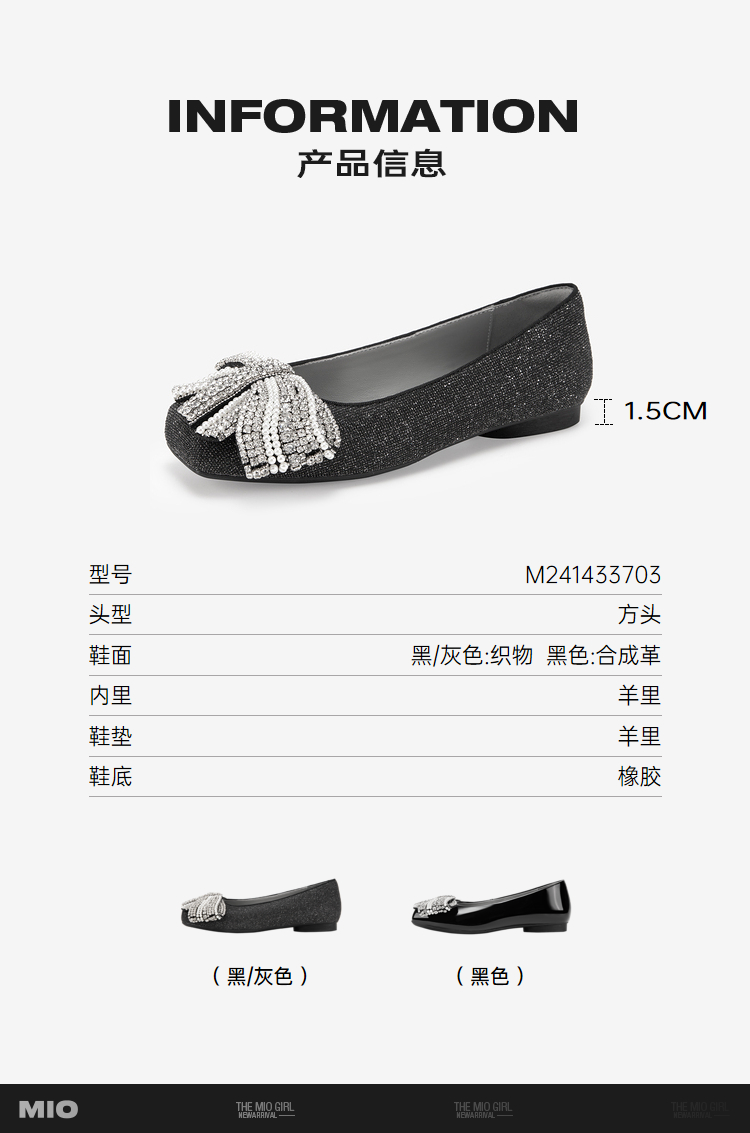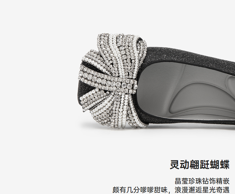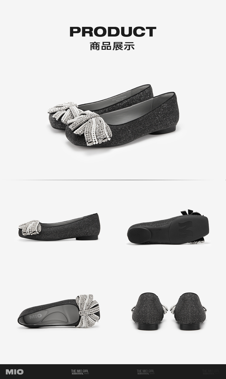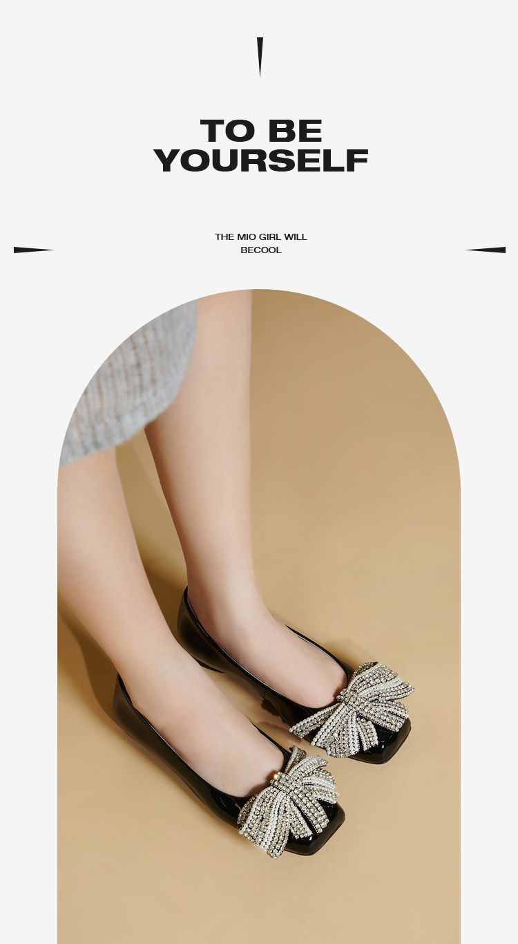 MIO米奥春季复古方头低跟浅口单鞋蝴蝶钻饰甜美小单鞋女鞋M241433703