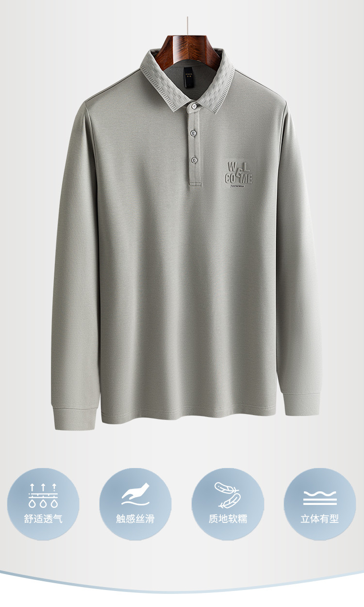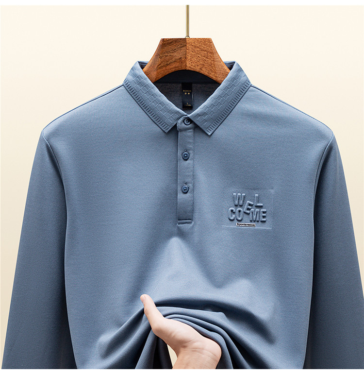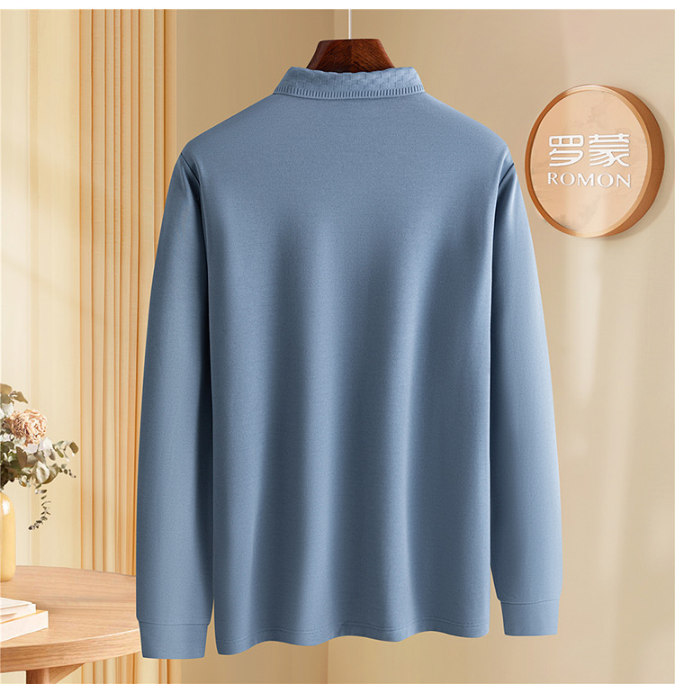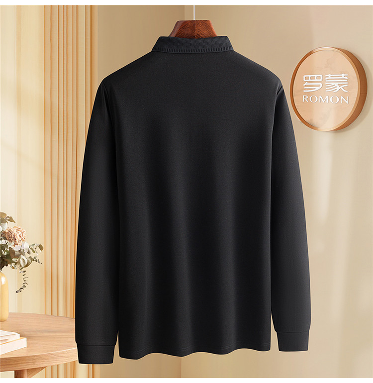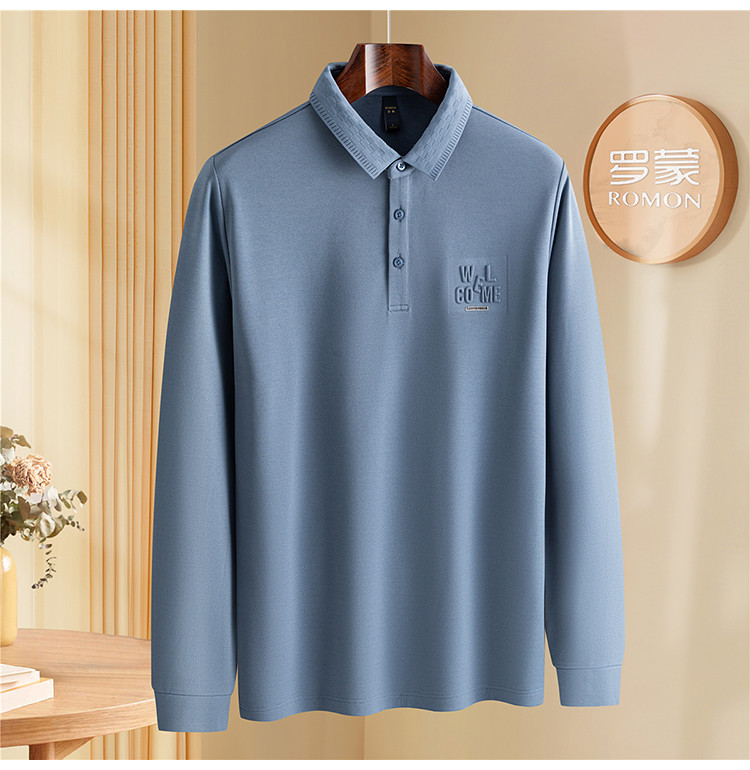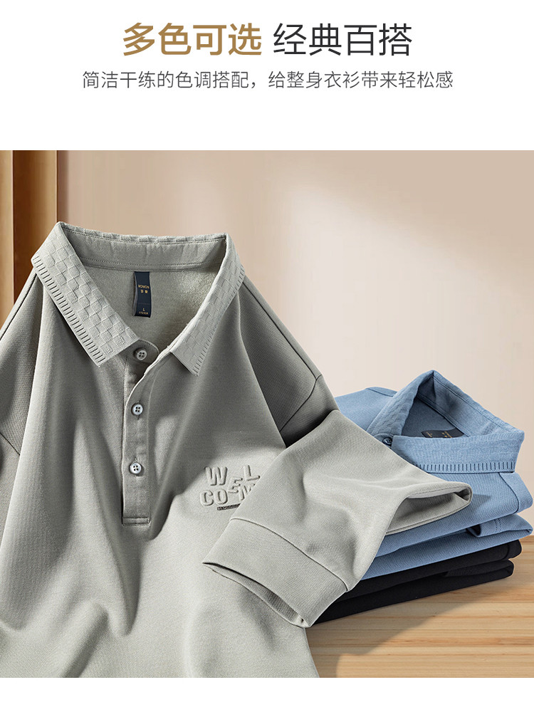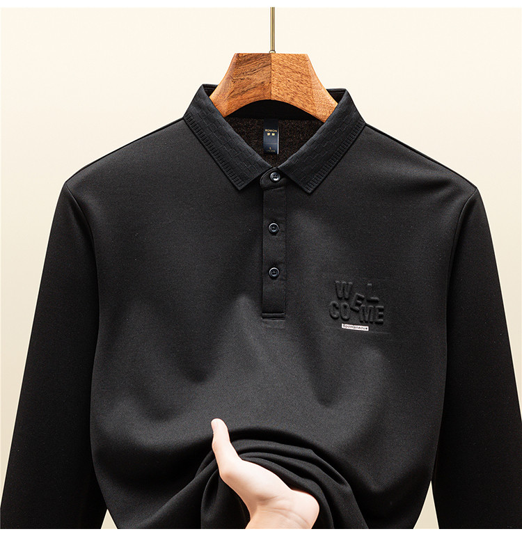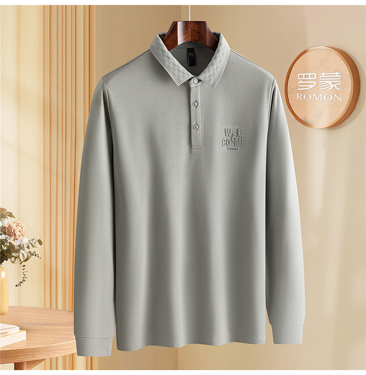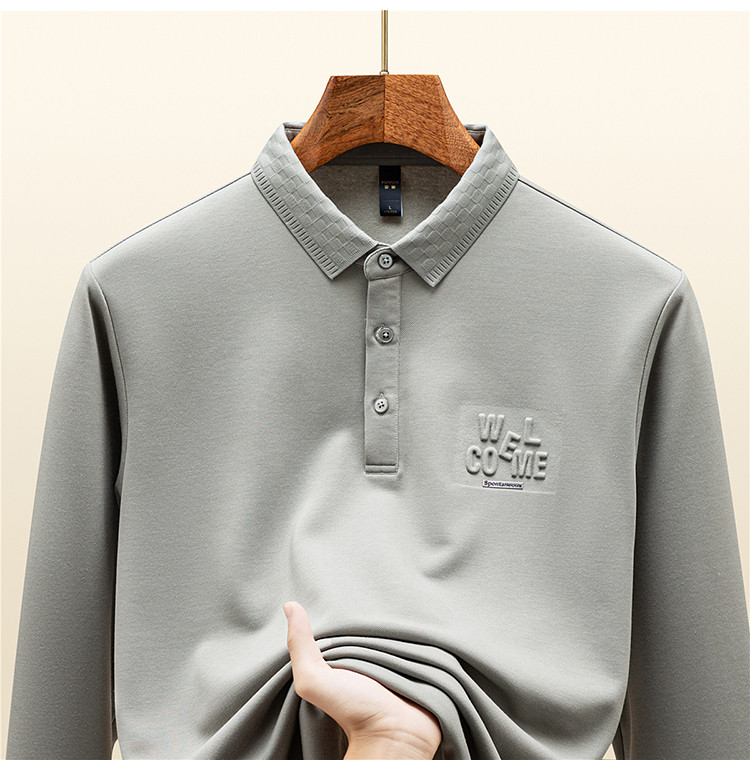 罗蒙男士Polo衫秋冬保暖含羊毛蚕丝双面磨毛时尚凹凸工艺polo衫男长袖t恤男