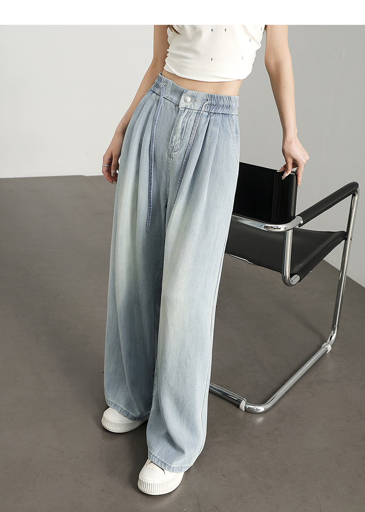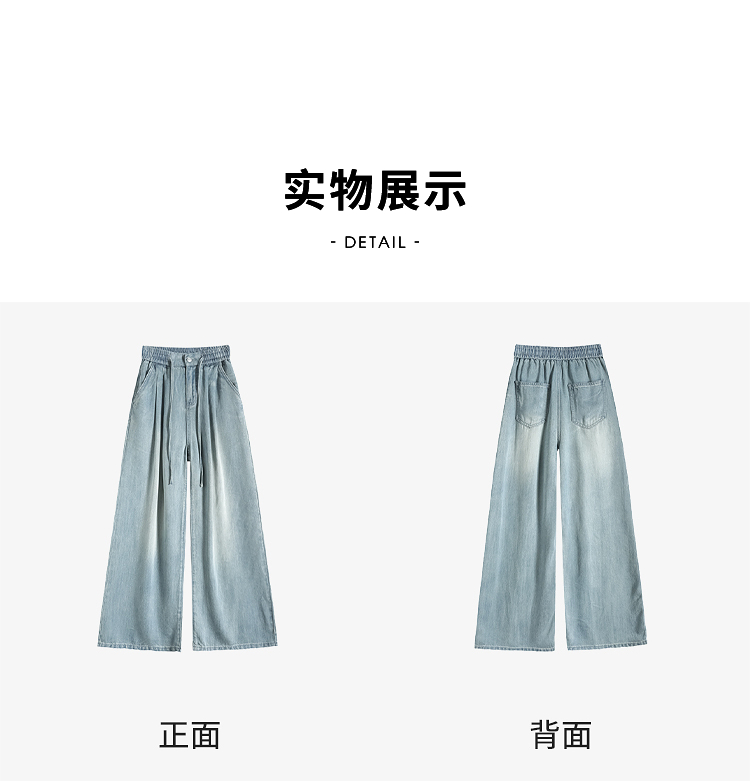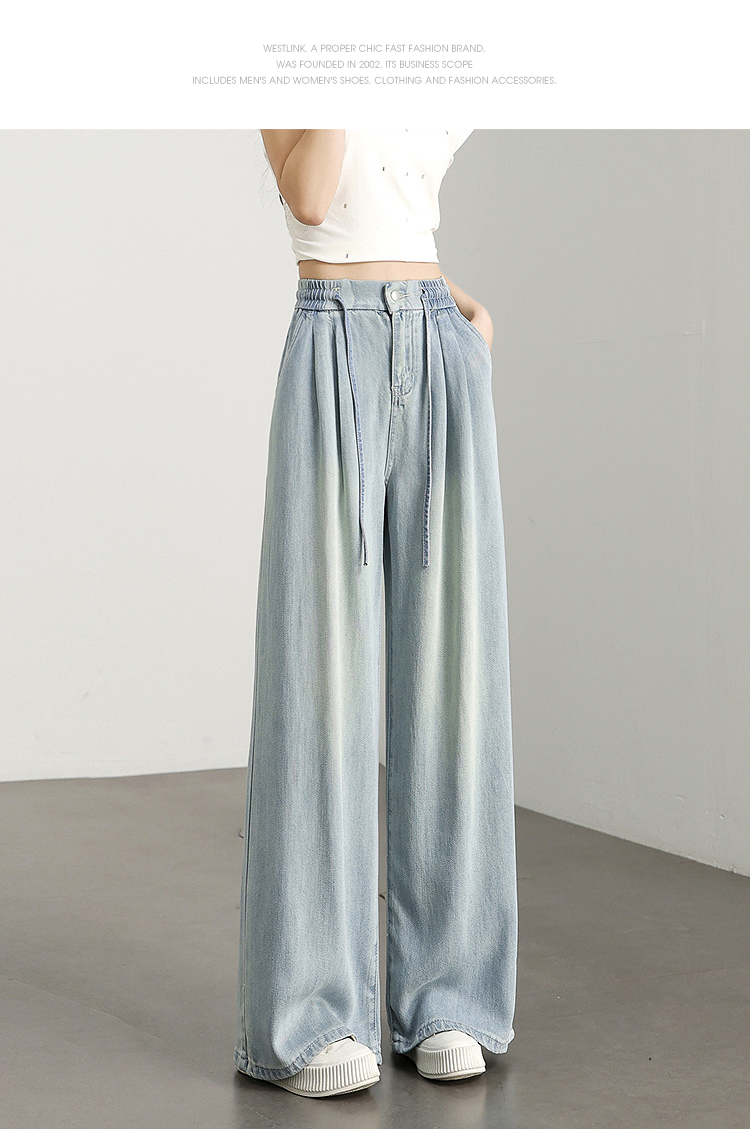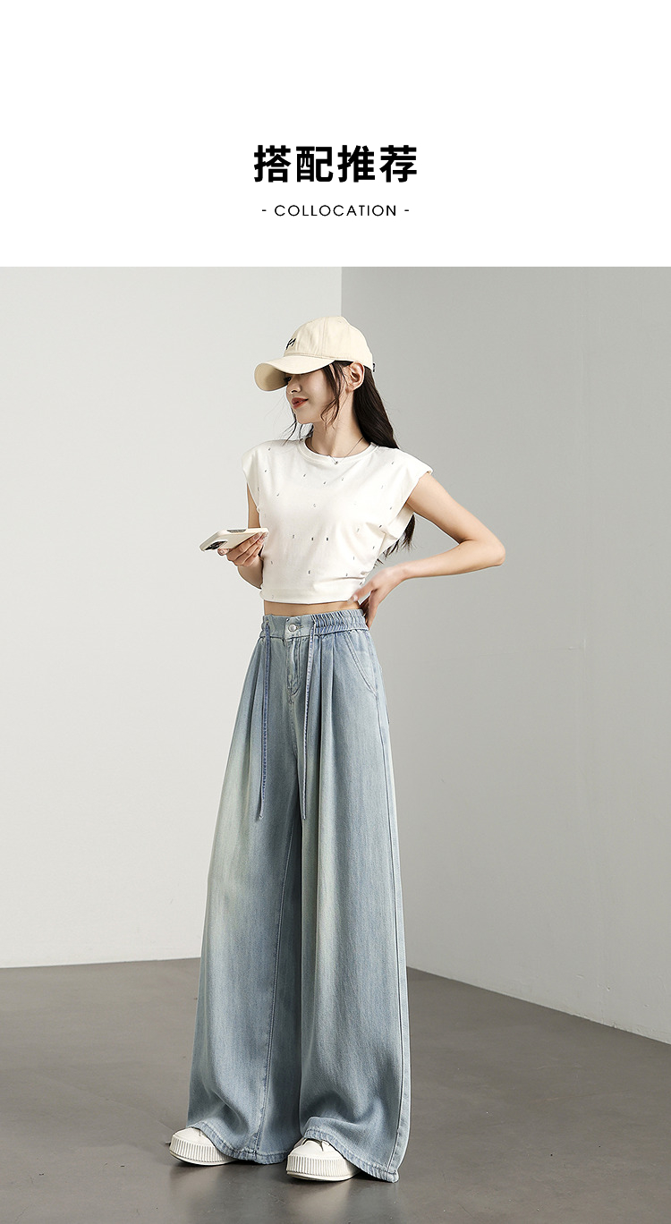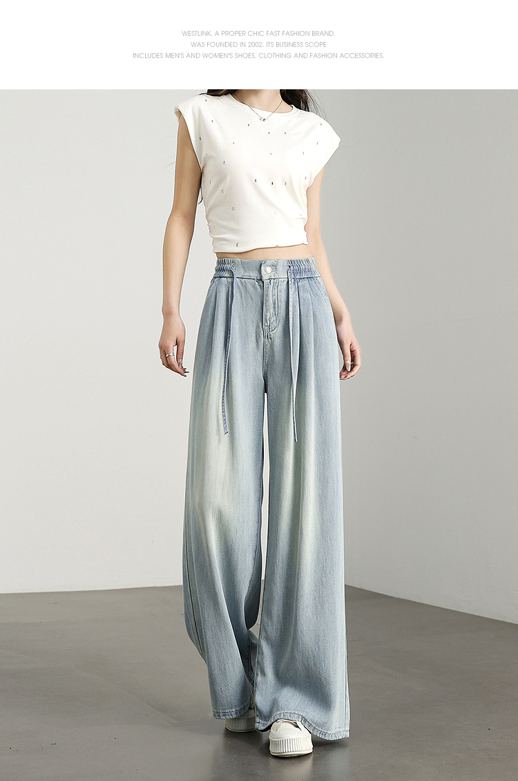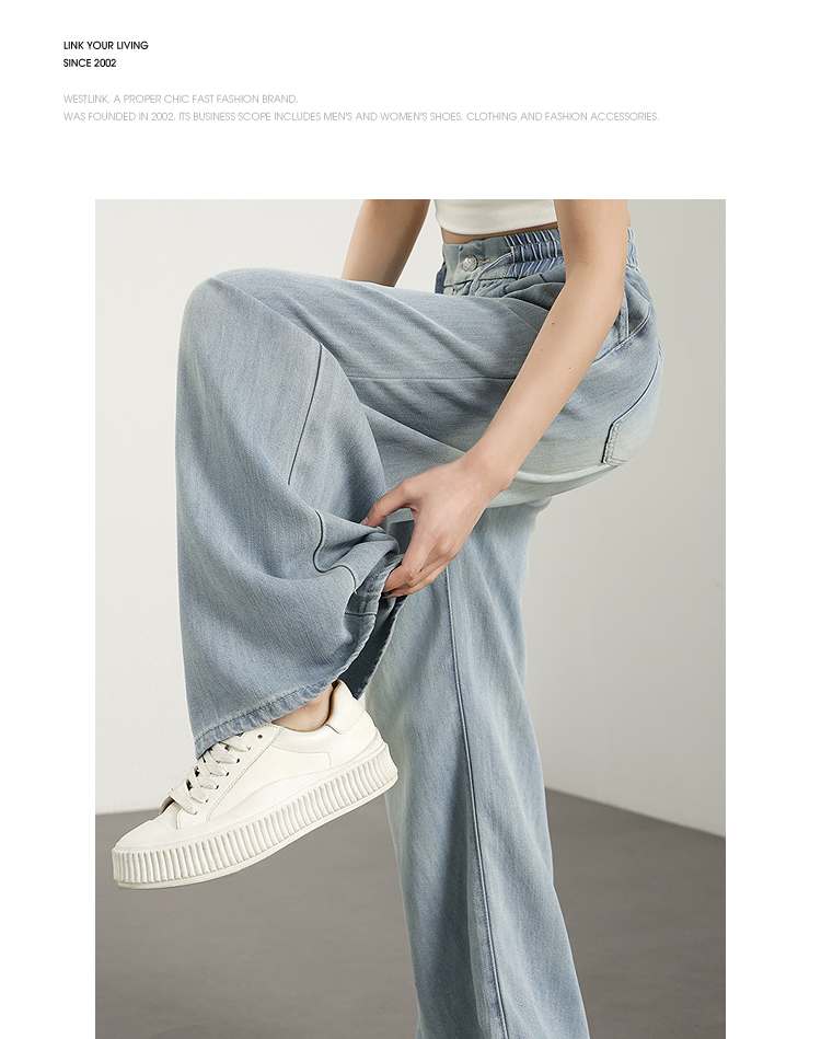 西遇宽松慵懒风阔腿裤女新款直筒高腰浅蓝色水洗牛仔裤D0050424