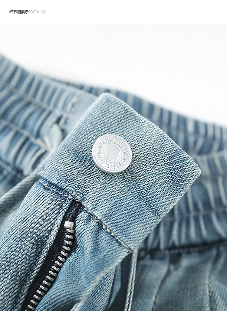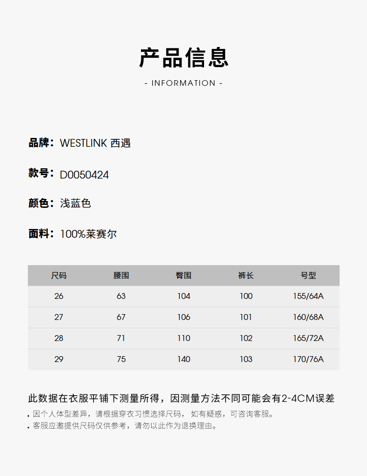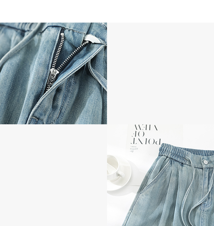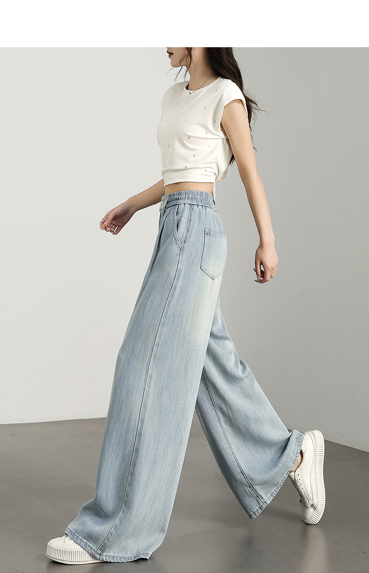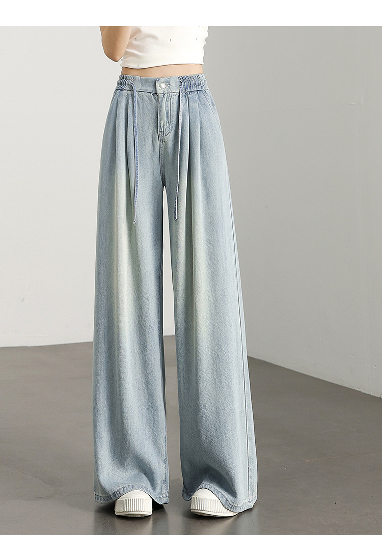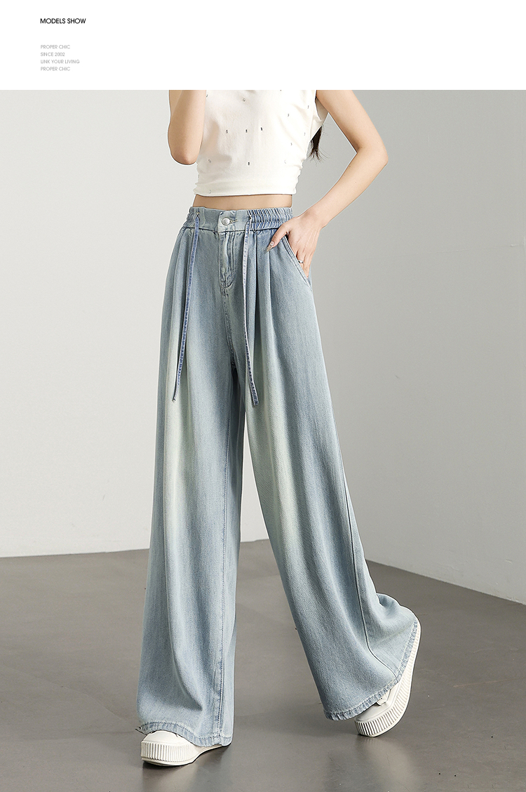 西遇宽松慵懒风阔腿裤女新款直筒高腰浅蓝色水洗牛仔裤D0050424