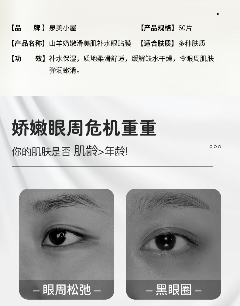 爆款来袭!泉美小屋山羊奶嫩滑美肌眼膜,淡化细纹黑眼圈眼袋,改善眼部弹力,让你眼睛变得更美~