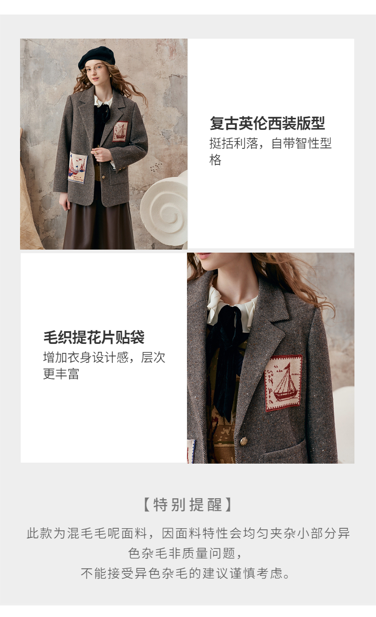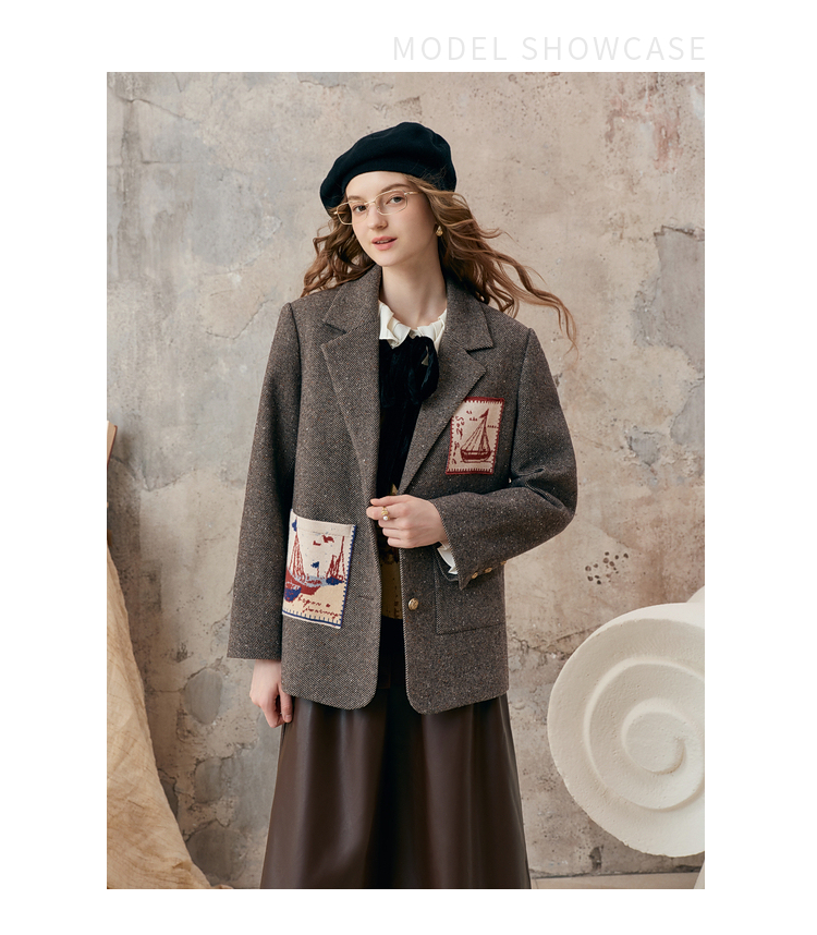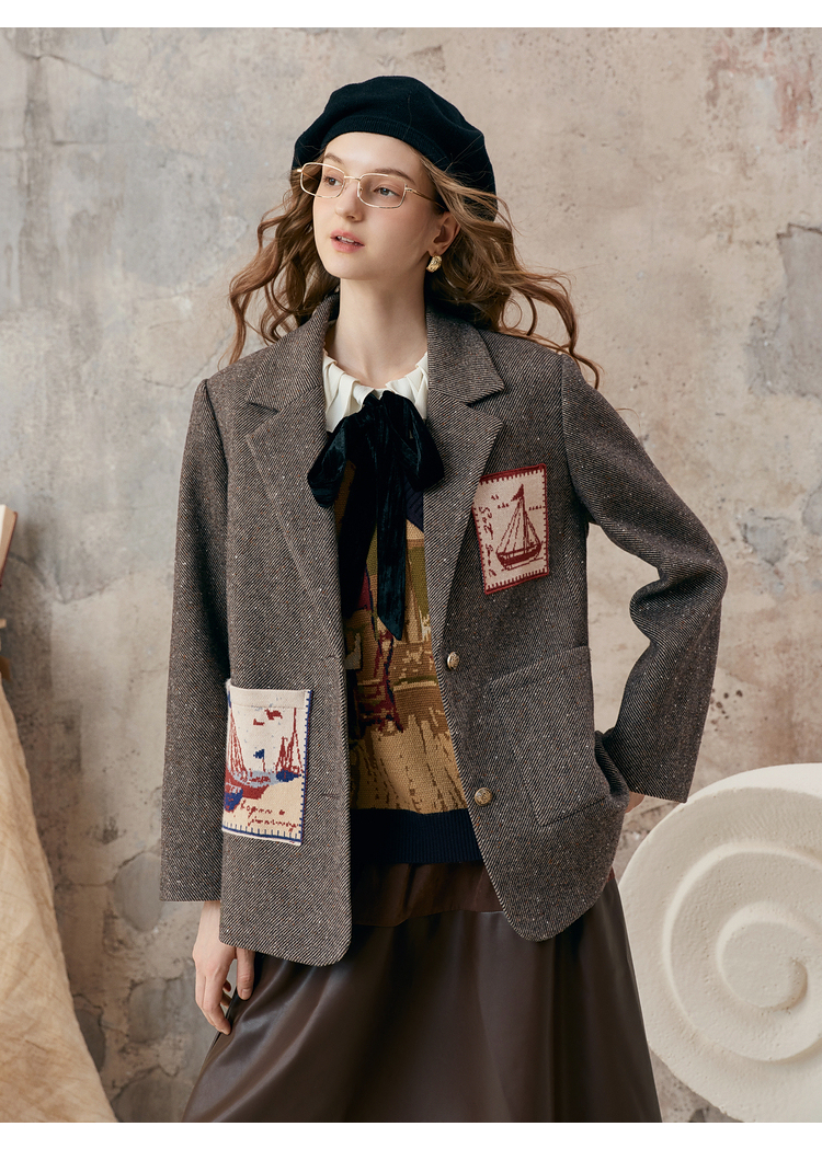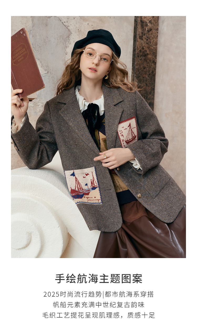 【暖冬内购】两三事 漂流日记 2025秋冬新款英伦风毛织提花贴袋毛呢外套女宽松