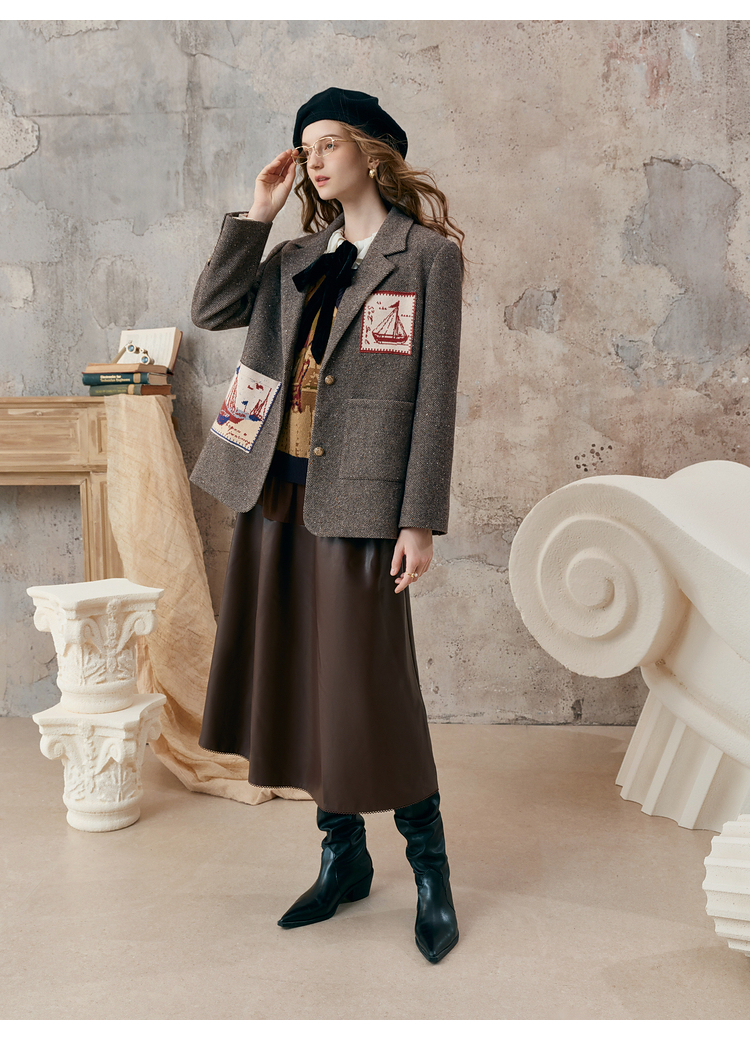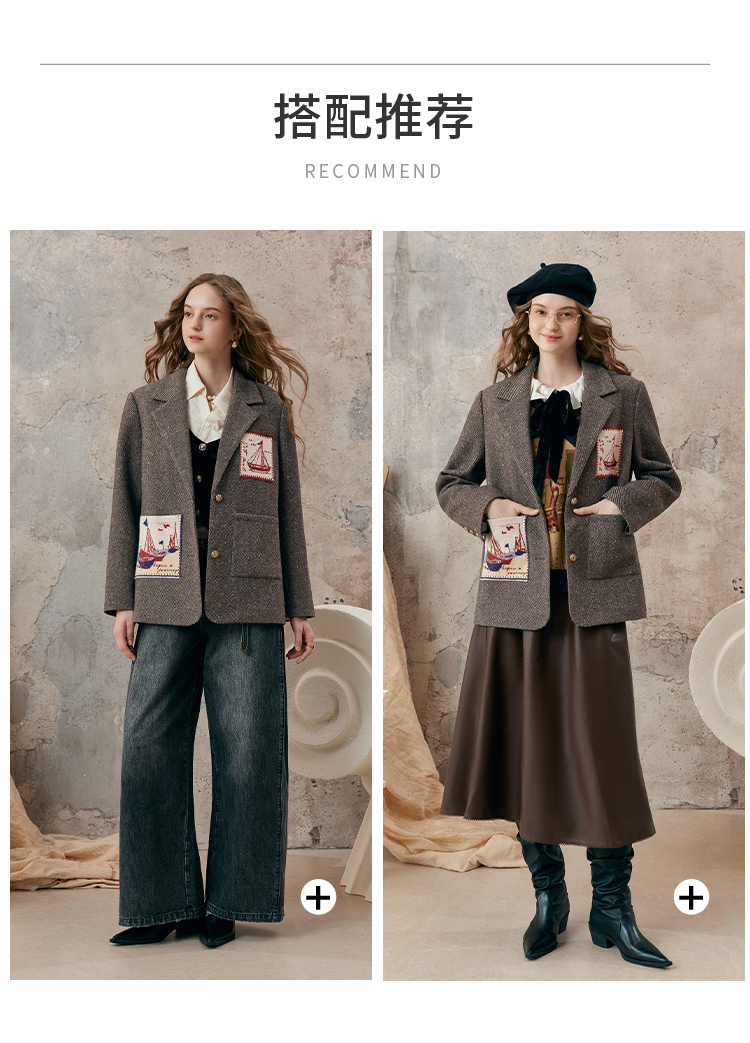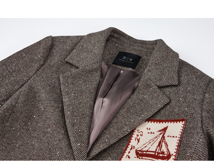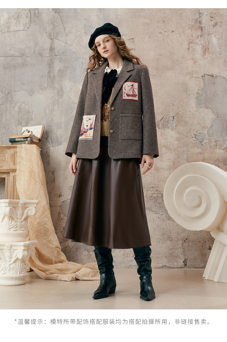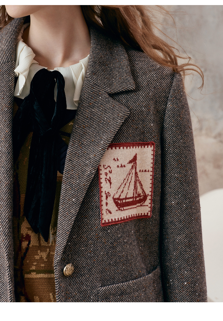【暖冬内购】两三事 漂流日记 2025秋冬新款英伦风毛织提花贴袋毛呢外套女宽松