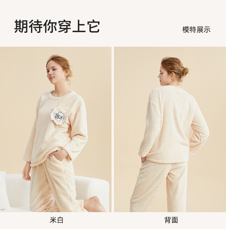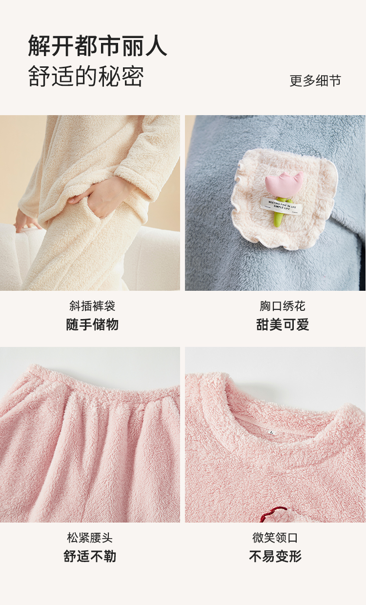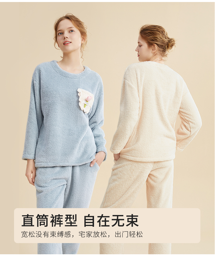 都市丽人秋冬睡衣长袖长裤长毛绒家居服2H3117