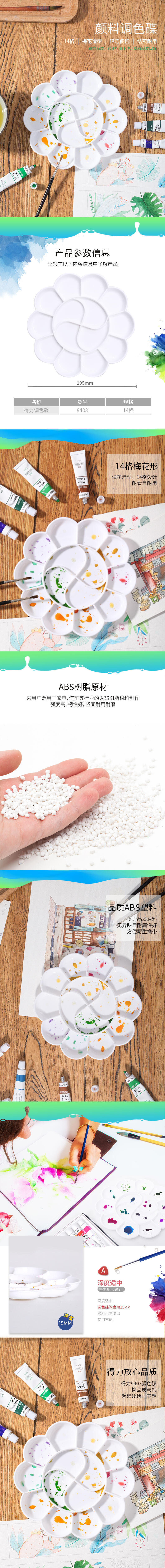 得力优酷调色盘9403白(14格19.5cm)