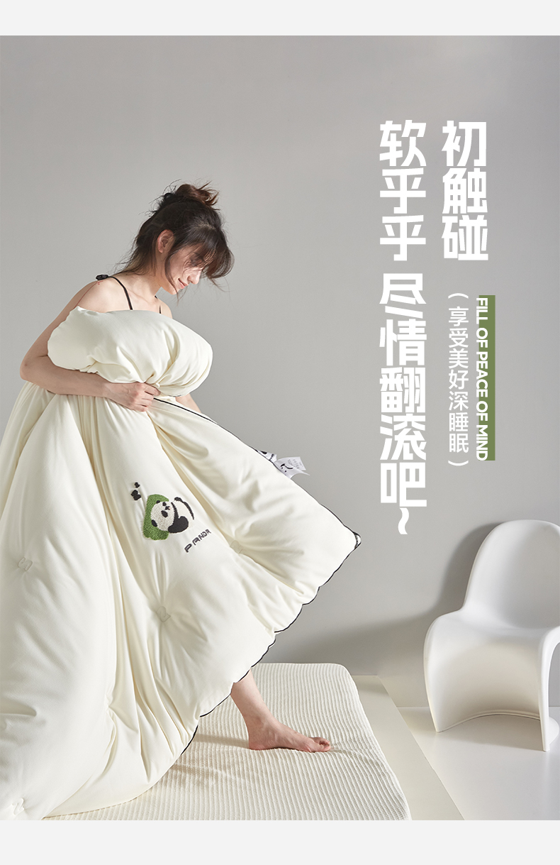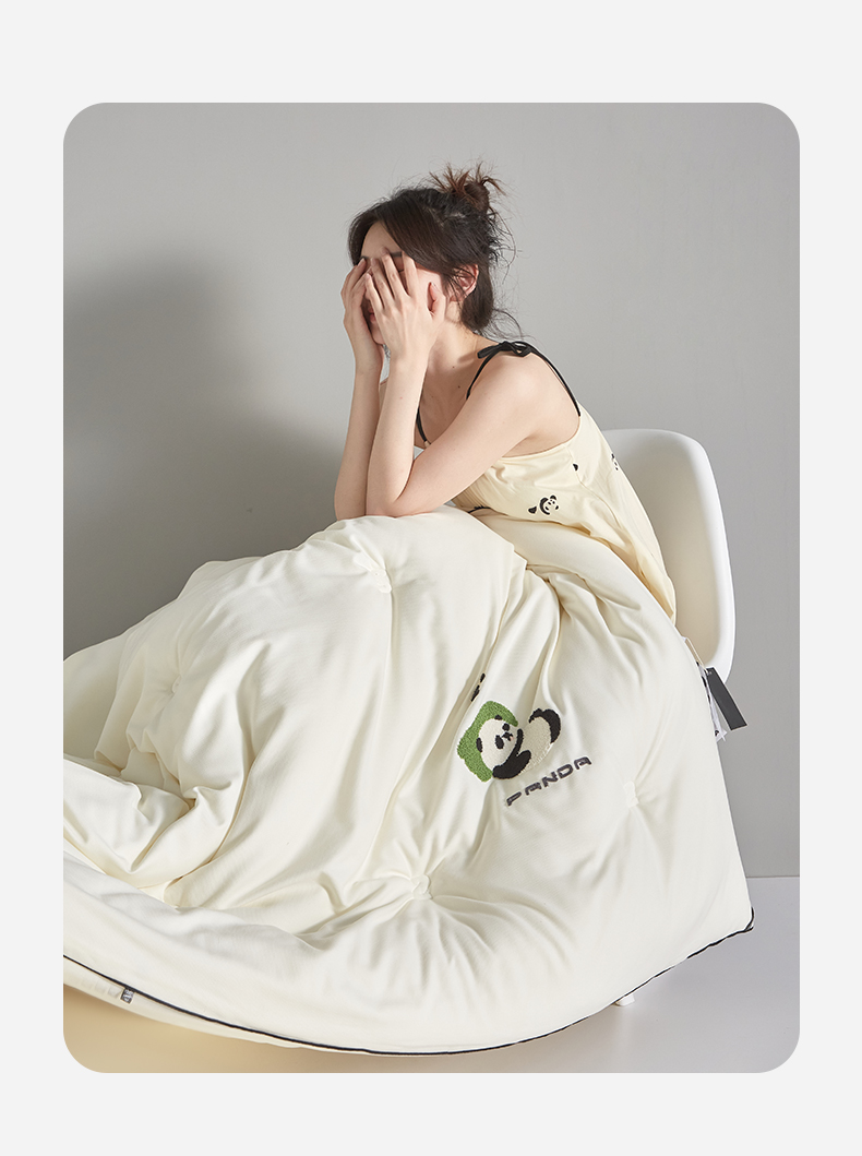 自然醒裸感熊猫毛巾绣被子棉被芯春秋被单双人加厚保暖冬被四季通用被褥LFS