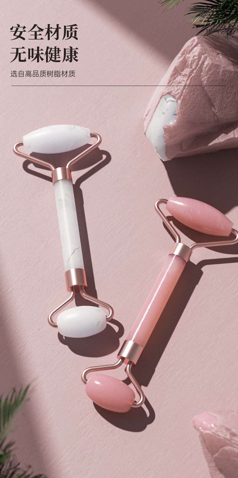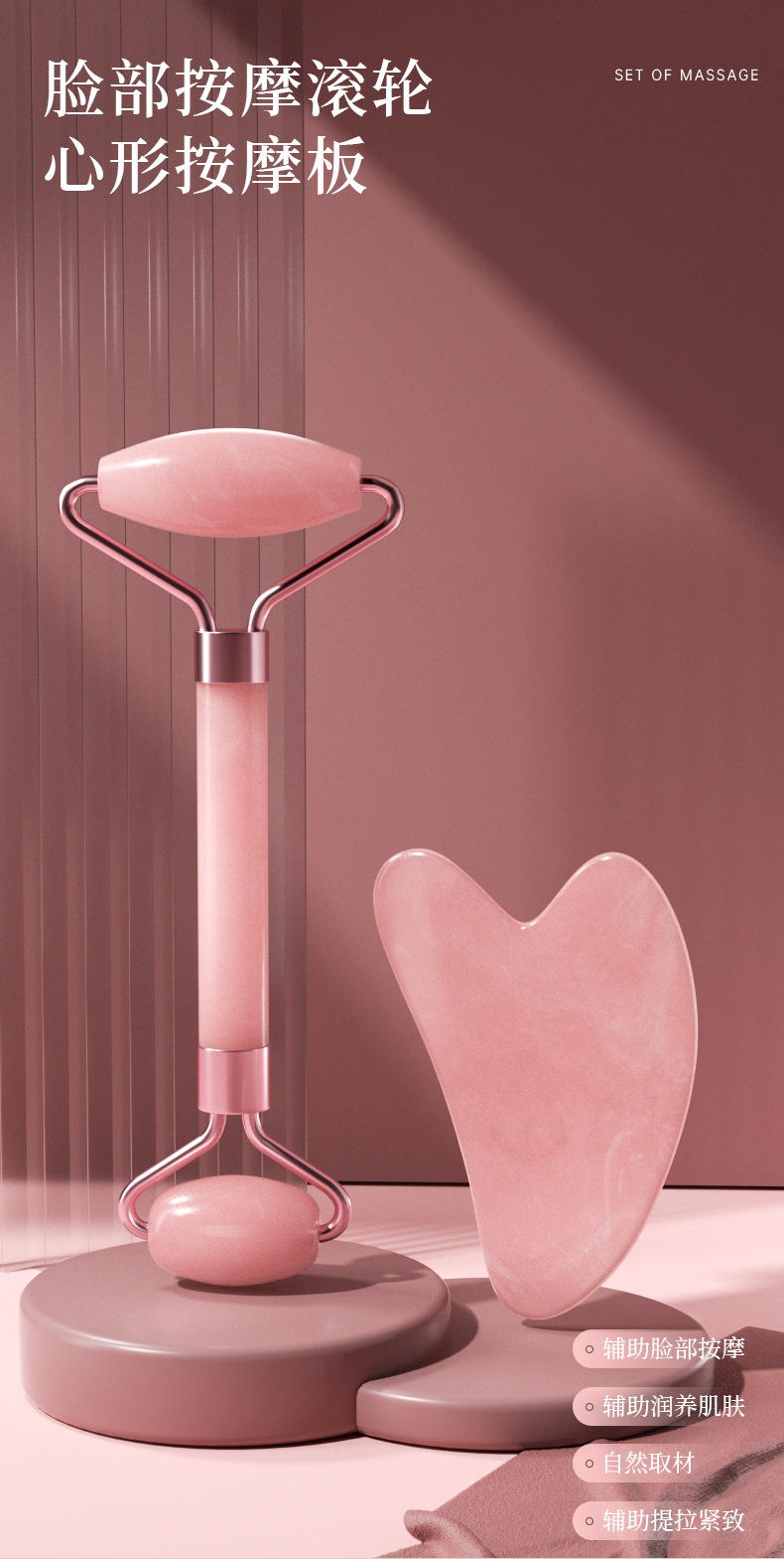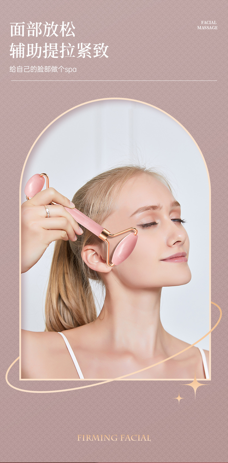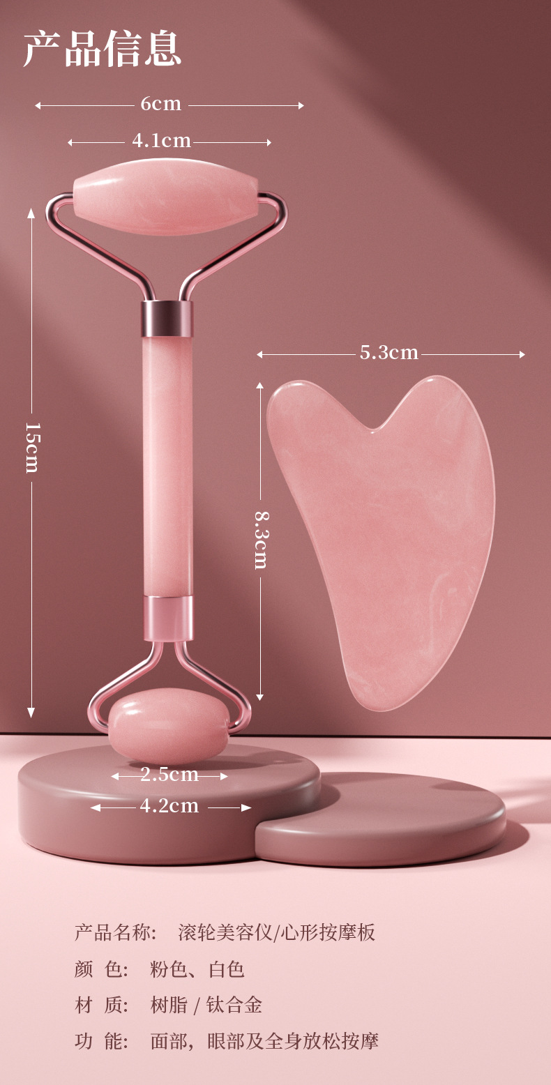 粉晶滚轮面部按摩瑜伽非玉石美容棒双头推脸眼部点穴提拉心型刮脸