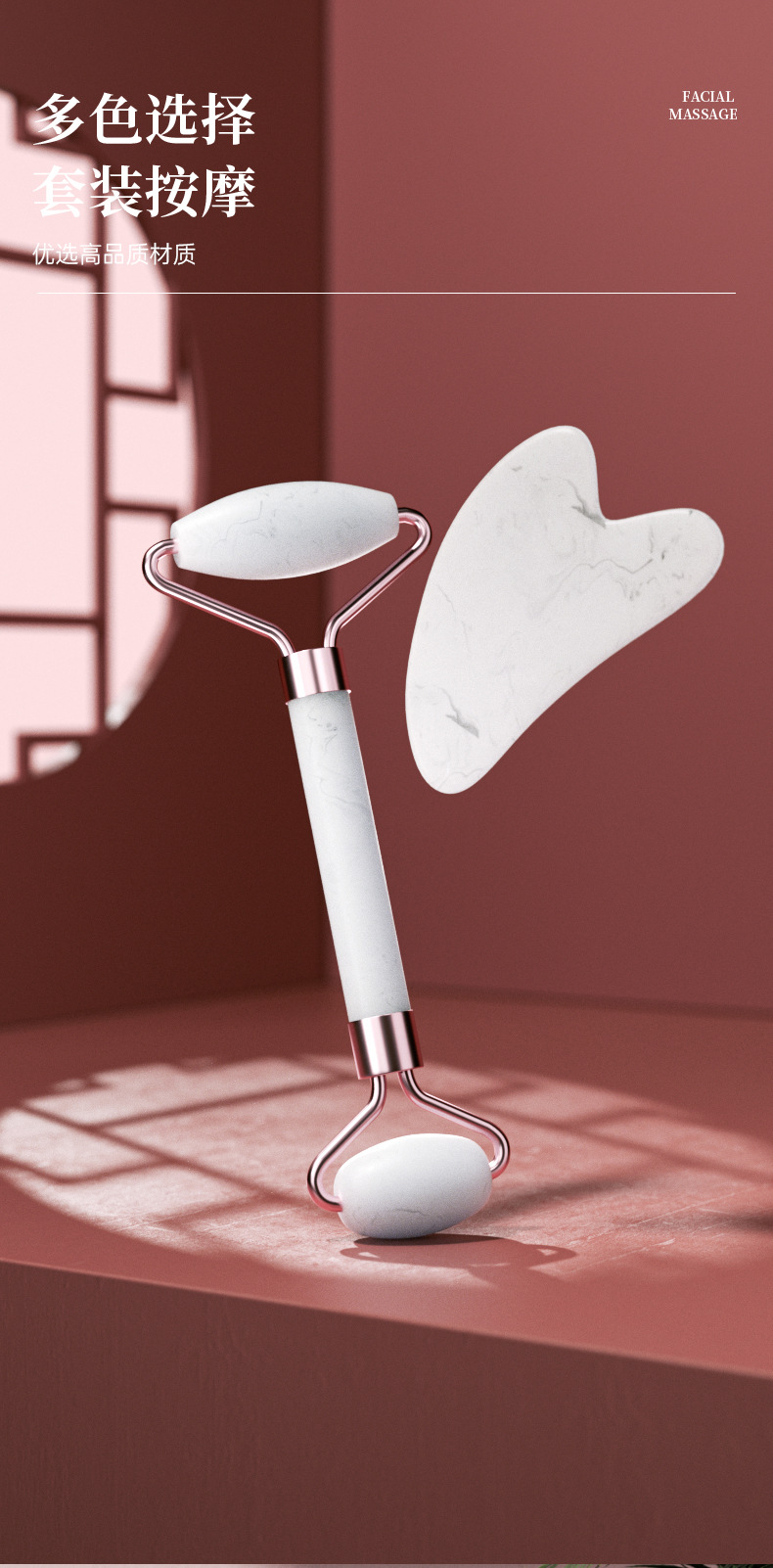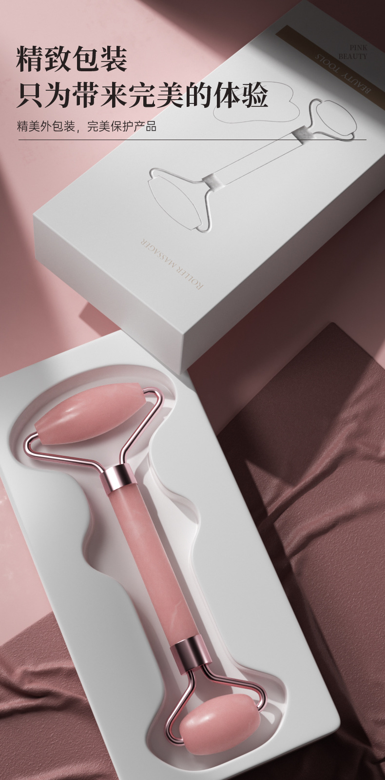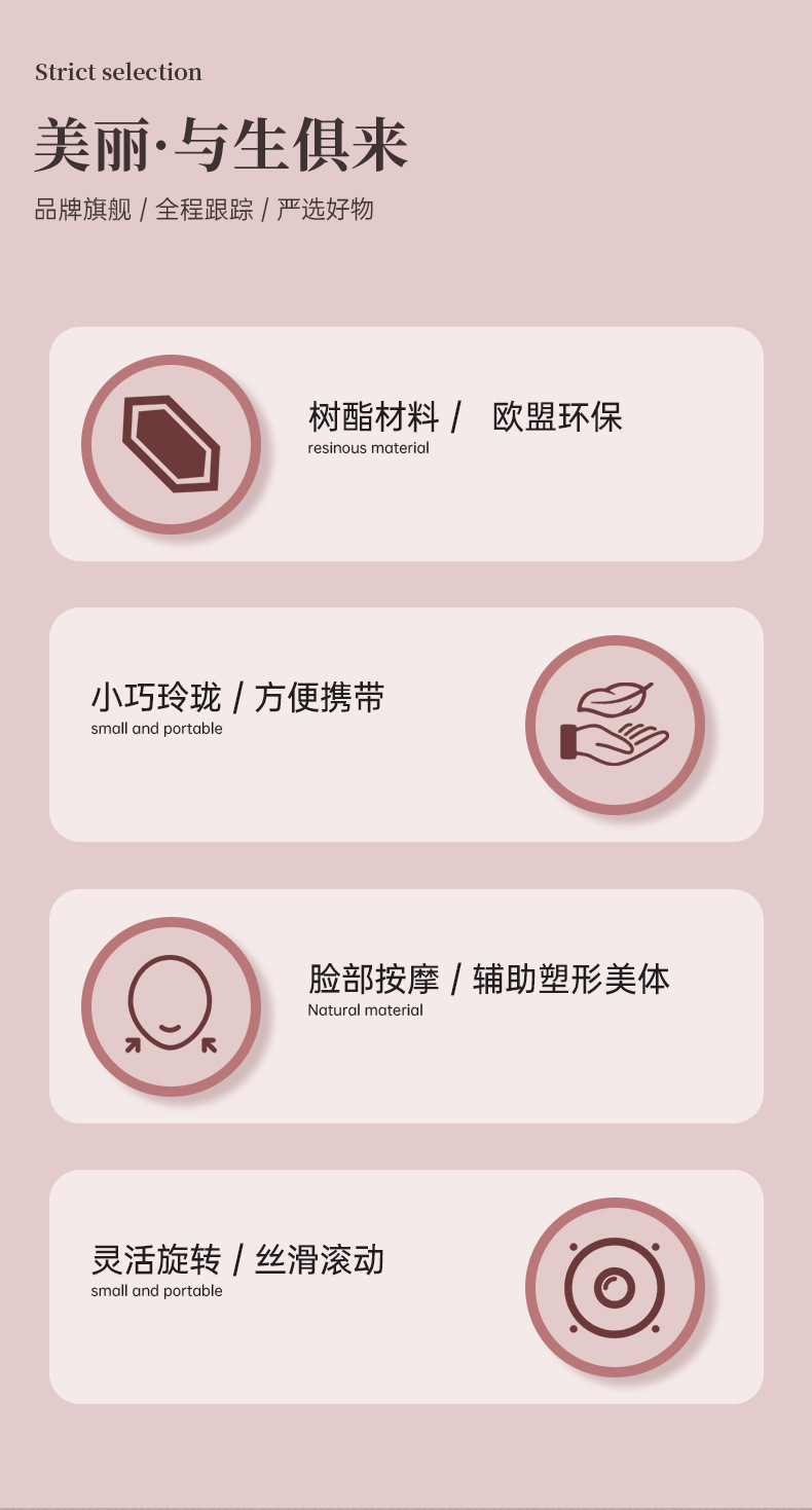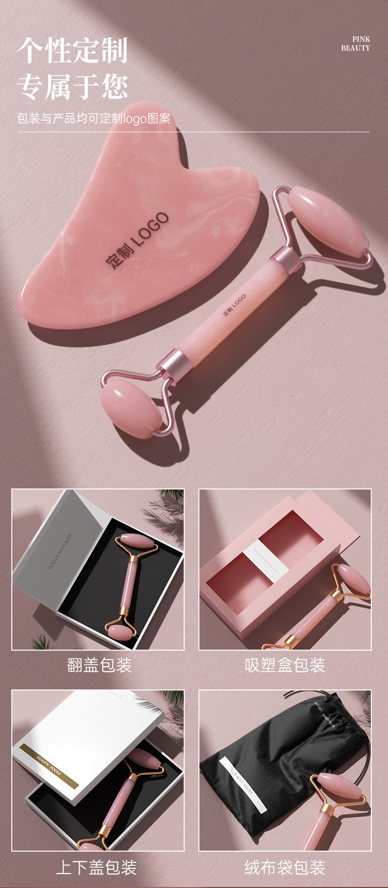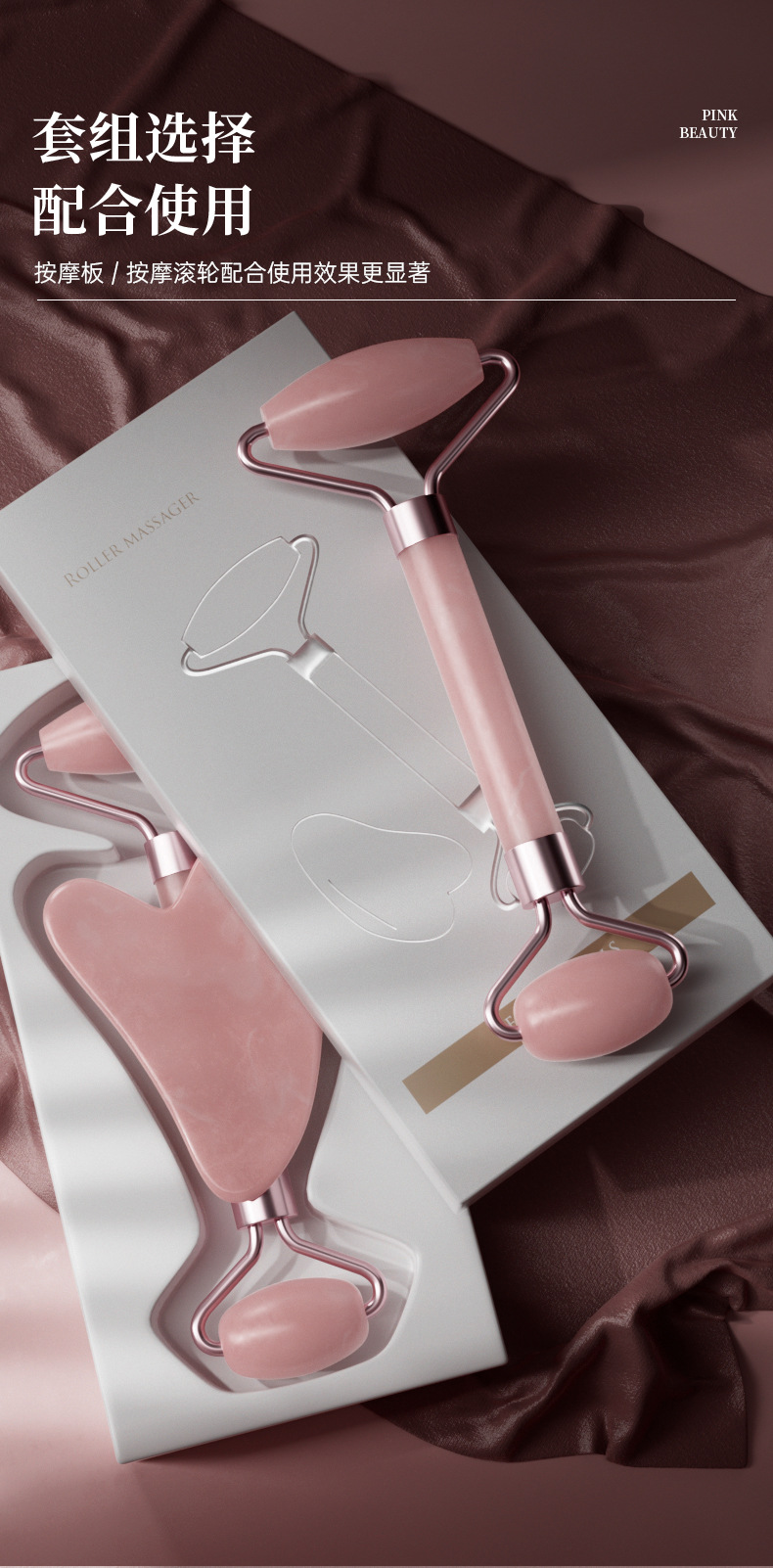 粉晶滚轮面部按摩瑜伽非玉石美容棒双头推脸眼部点穴提拉心型刮脸