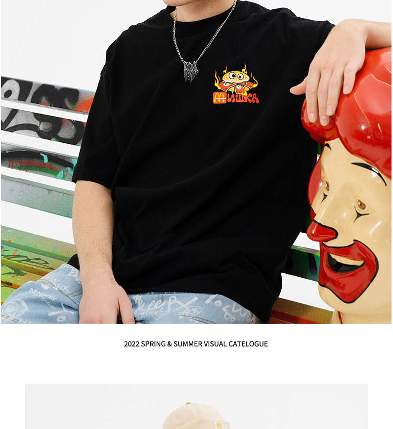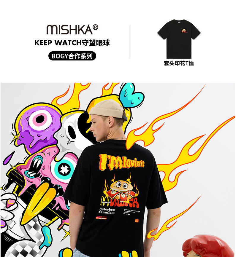 MISHKA大眼球 x BOGY合作系列 2022春夏趣味汉堡印花短袖T恤男女M21100064M