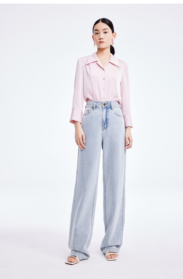 LILY2022夏新款女装时尚百搭显瘦高腰直筒阔腿牛仔裤122210GJ201