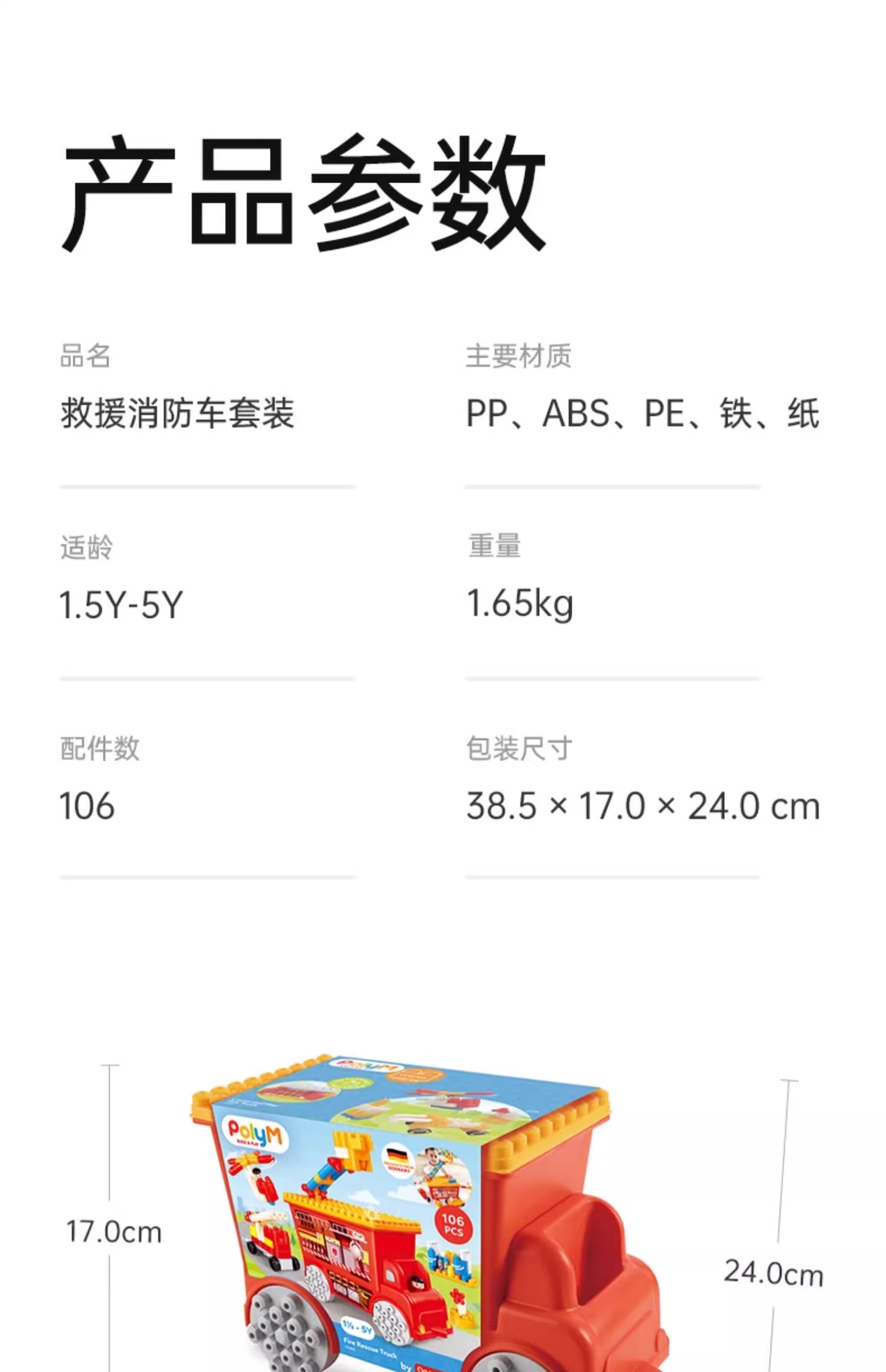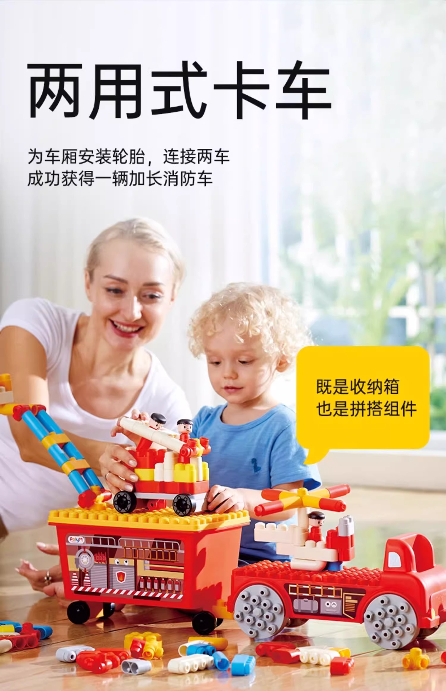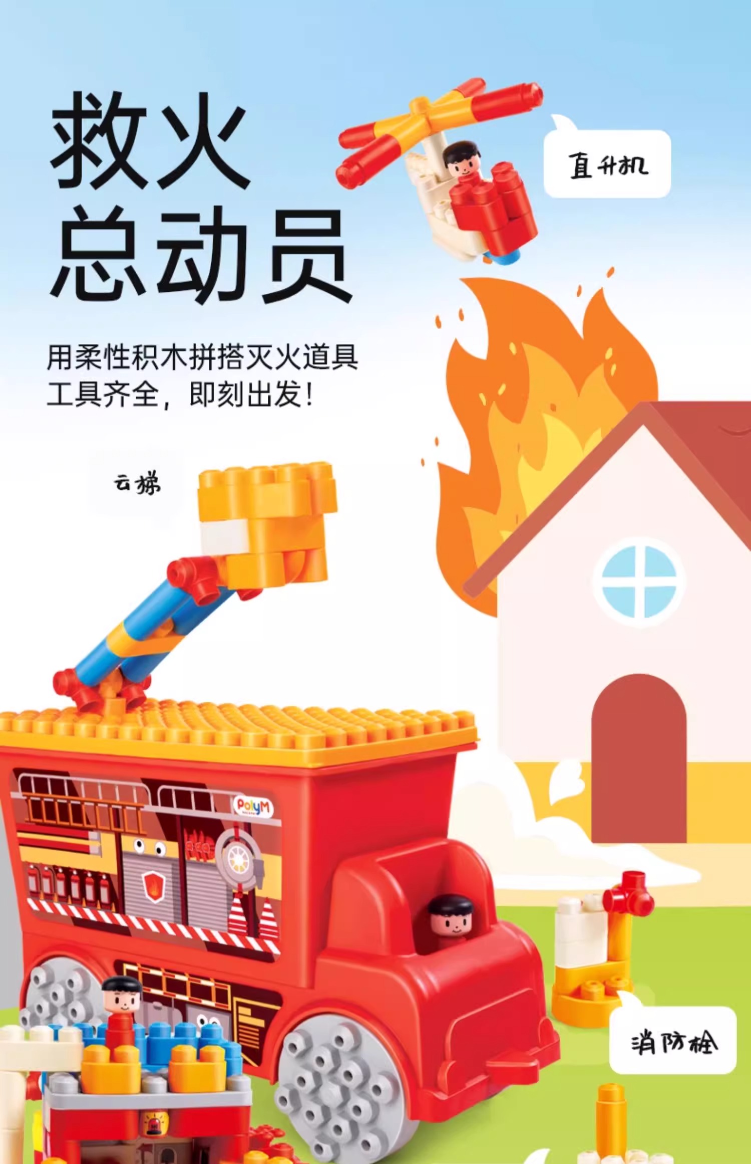 Hape救援消防车套装拼插积木儿童拼搭益智宝宝早教大颗粒软积木可机洗积木