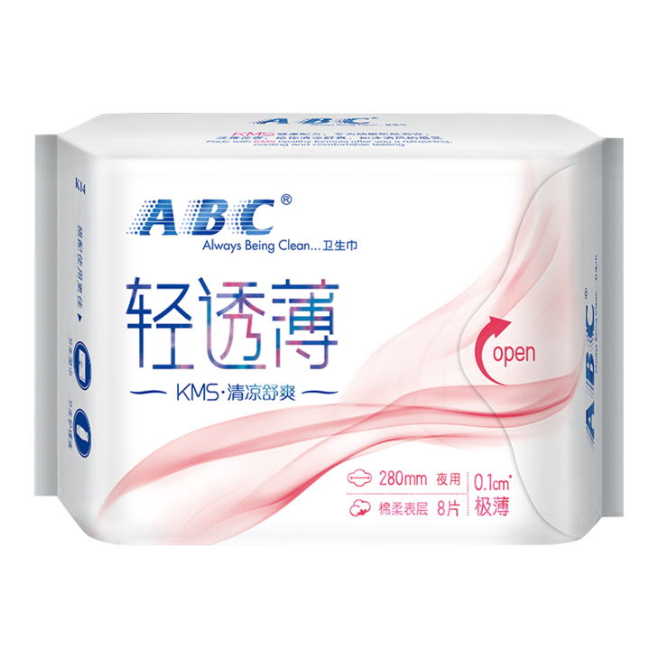 ABC卫生巾轻透薄夜用280mm(8片/包)