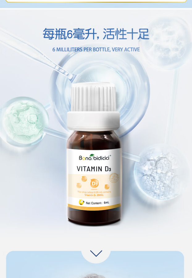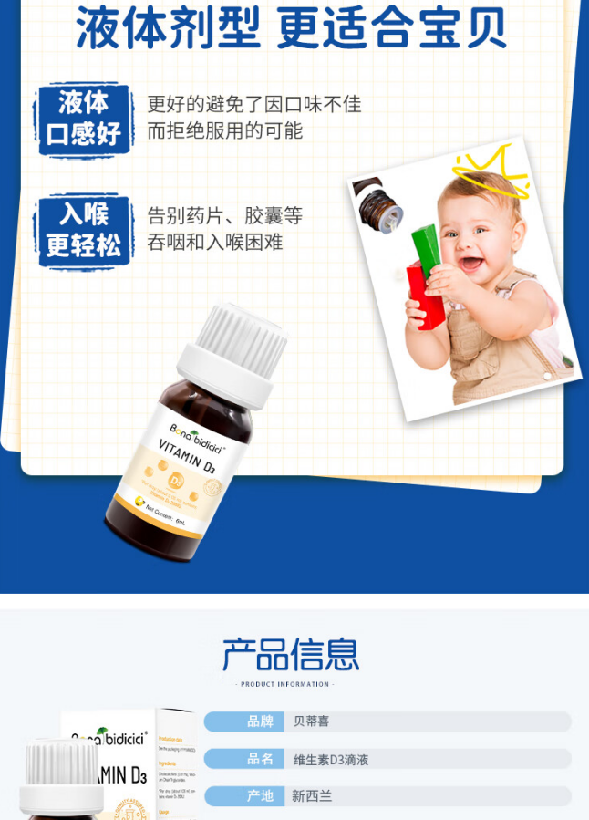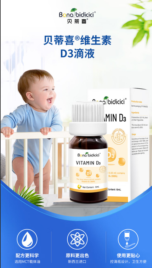 贝蒂喜维生素D3滴液 儿童营养钙好搭档 6ml/瓶 敏宝适用