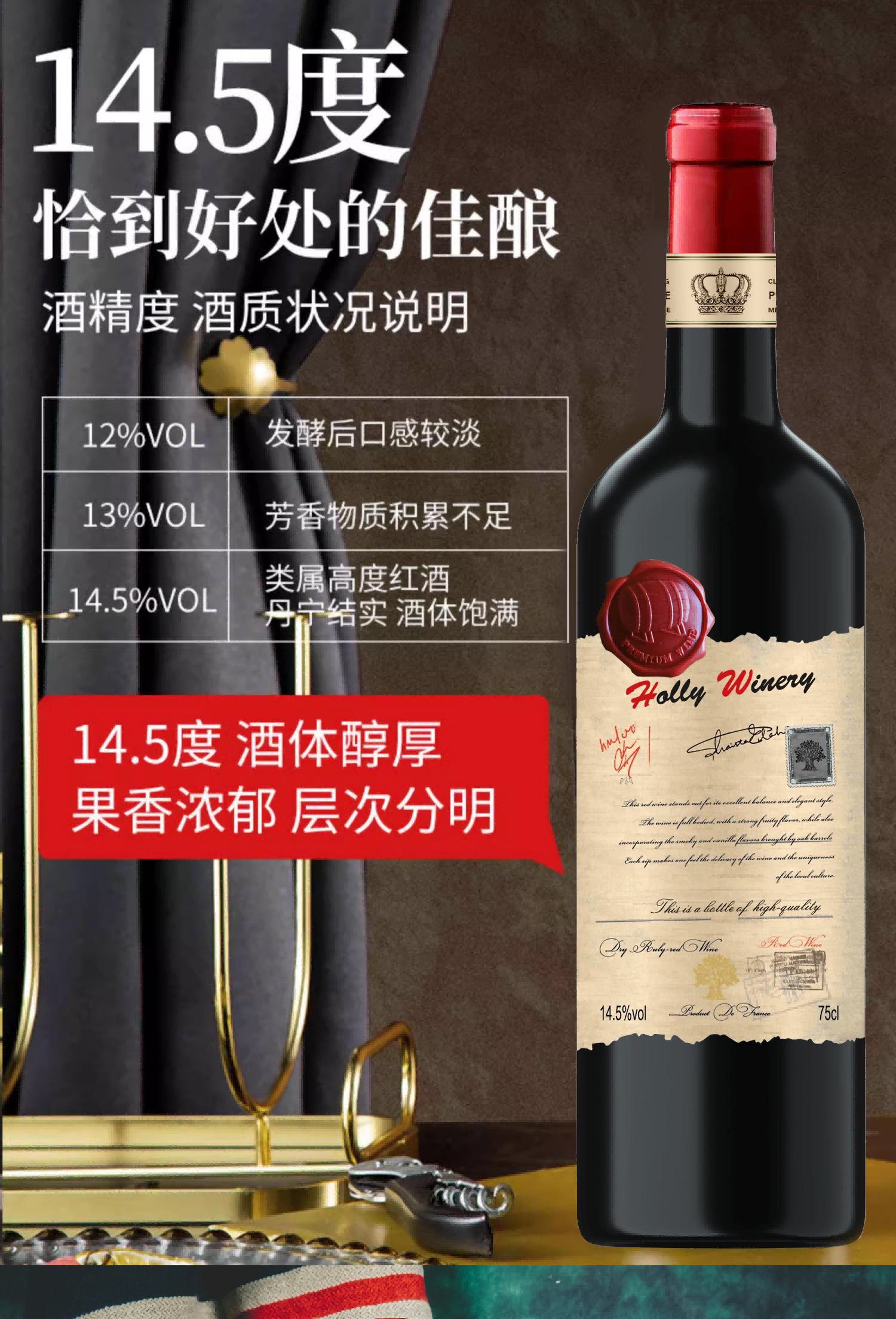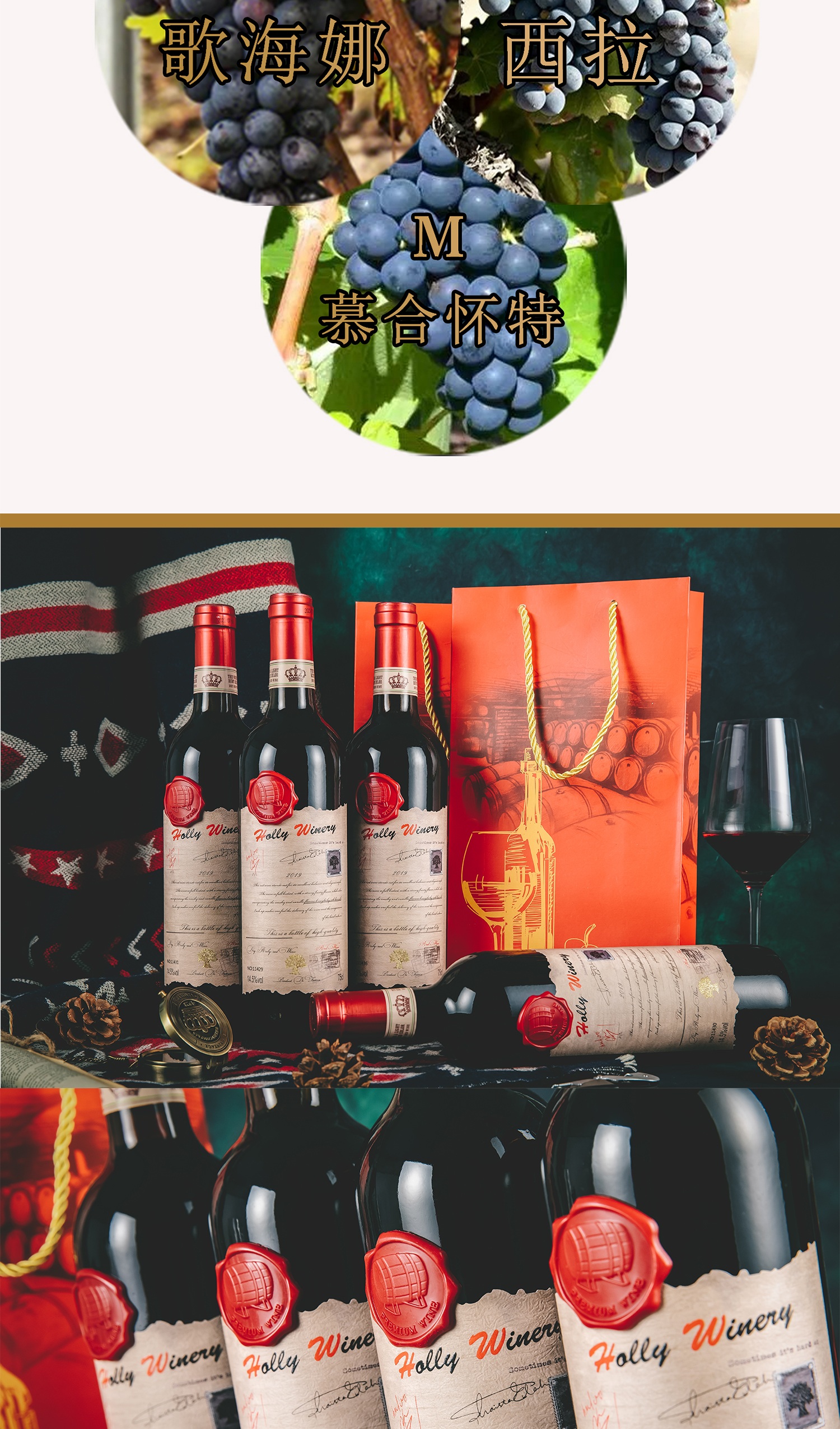 疯抢中!!【法国进口】霍利酒庄黄金古树邮票干红葡萄酒 750ml*4瓶礼袋装+海马刀
