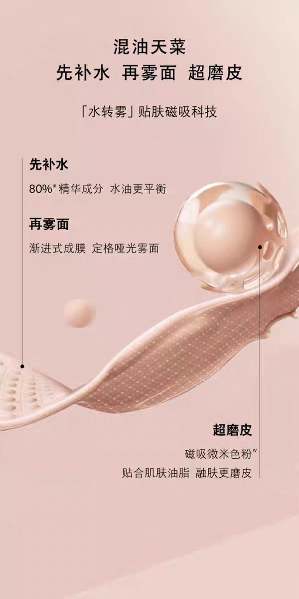 打造清新水润、完美无瑕的肤质,呈现有亮泽的哑致妆效