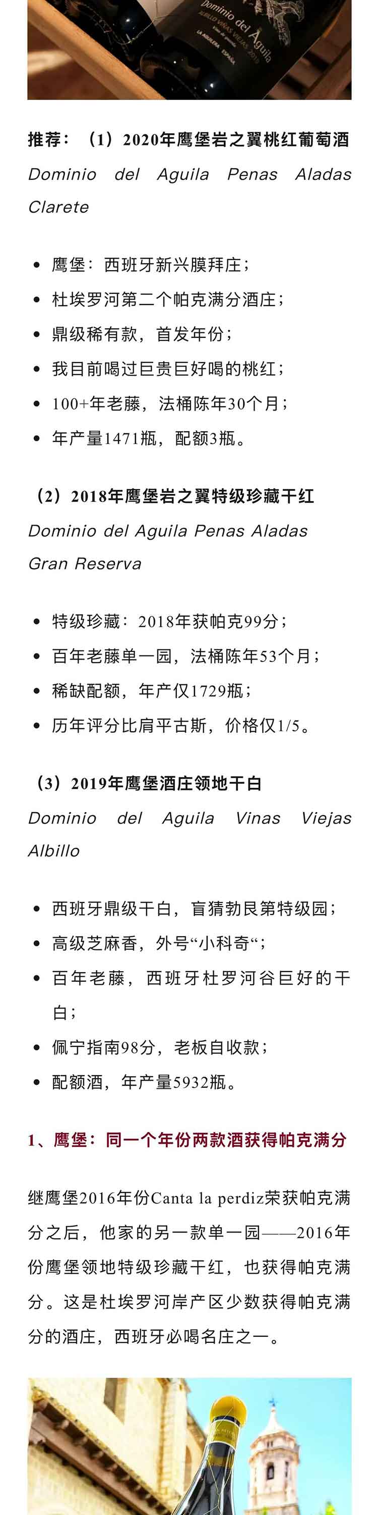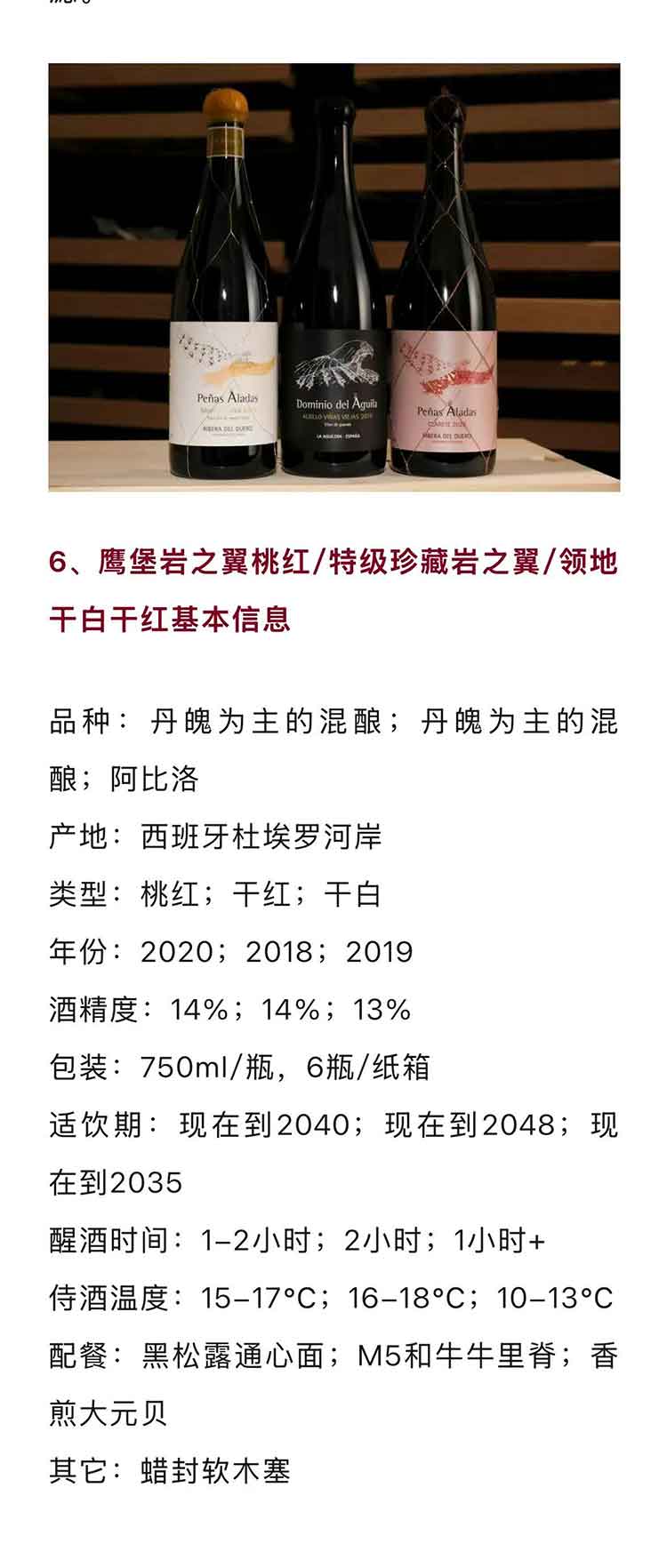 【罕见】西班牙鹰堡酒庄2018年岩之翼特级珍藏干红/2019年领地干白/2020年岩之翼桃红葡萄酒