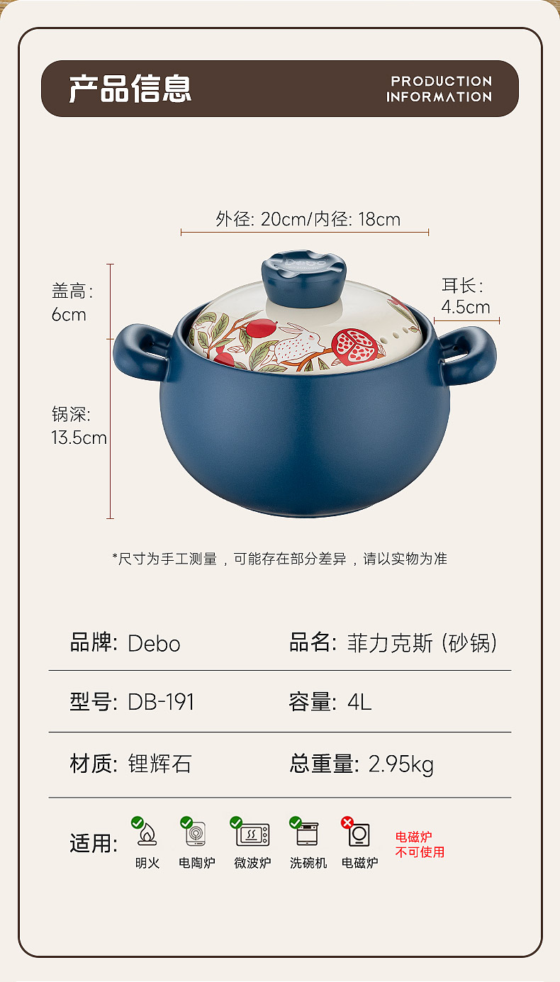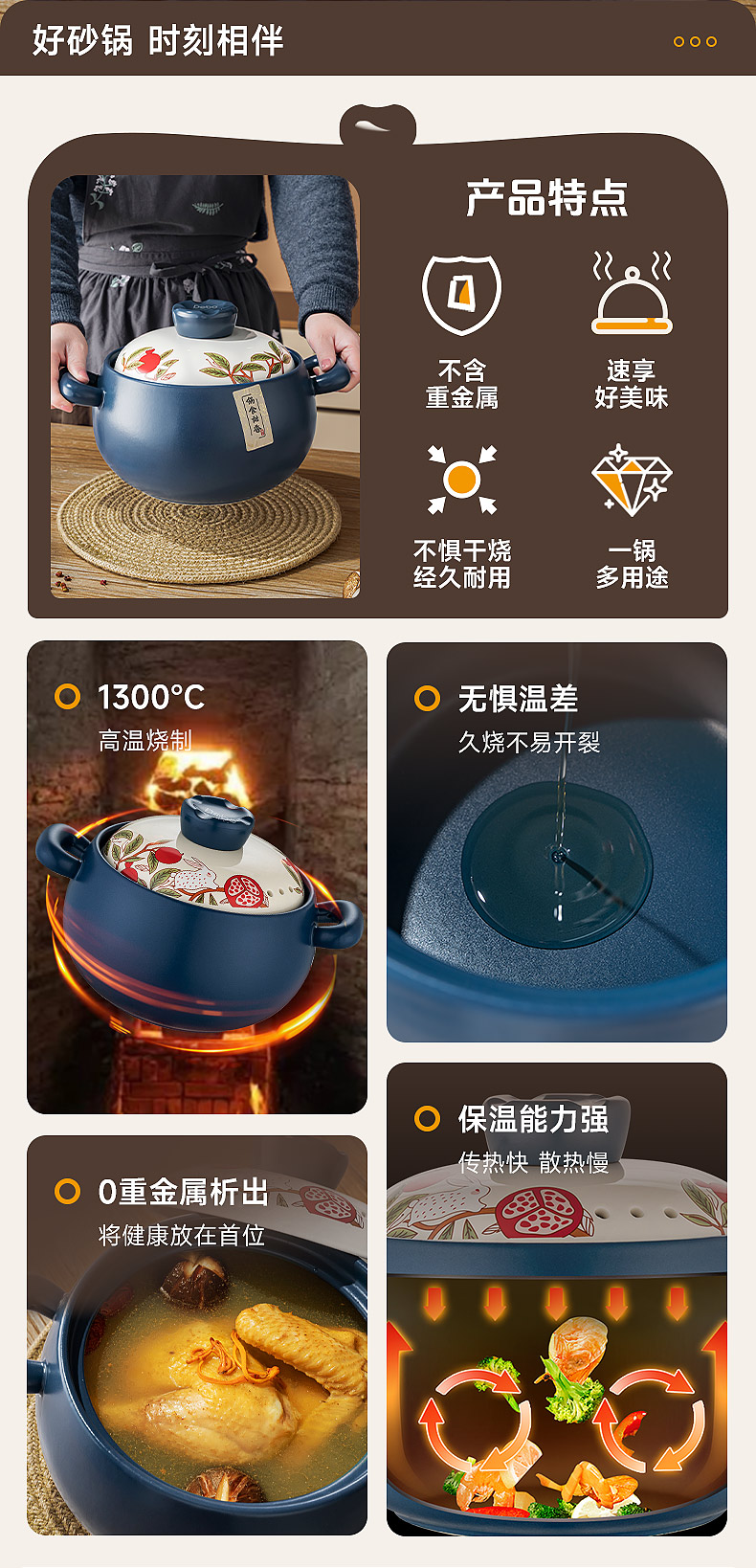 配置:砂锅盖*1、砂锅身*1
