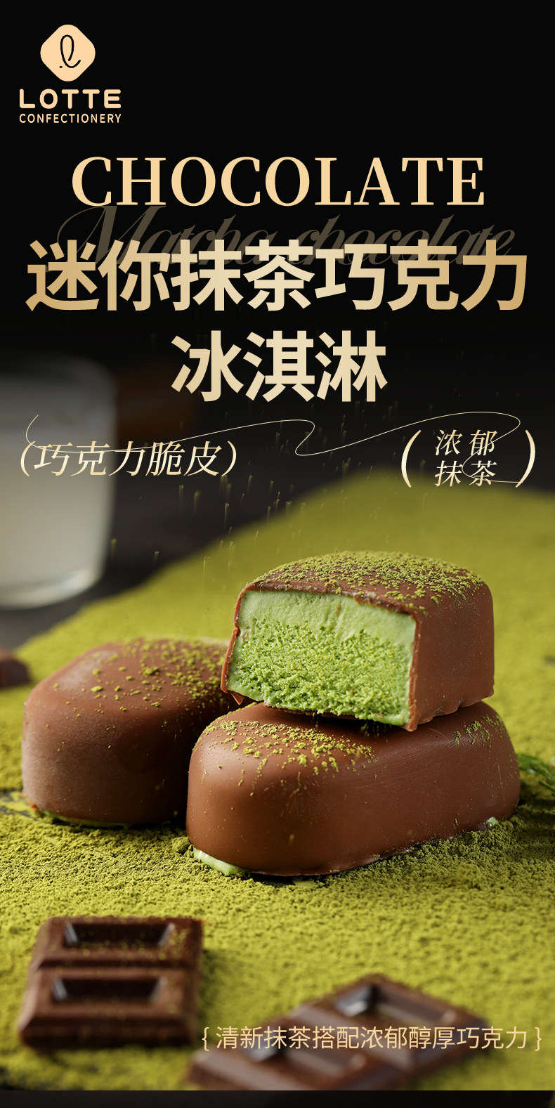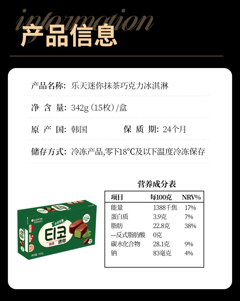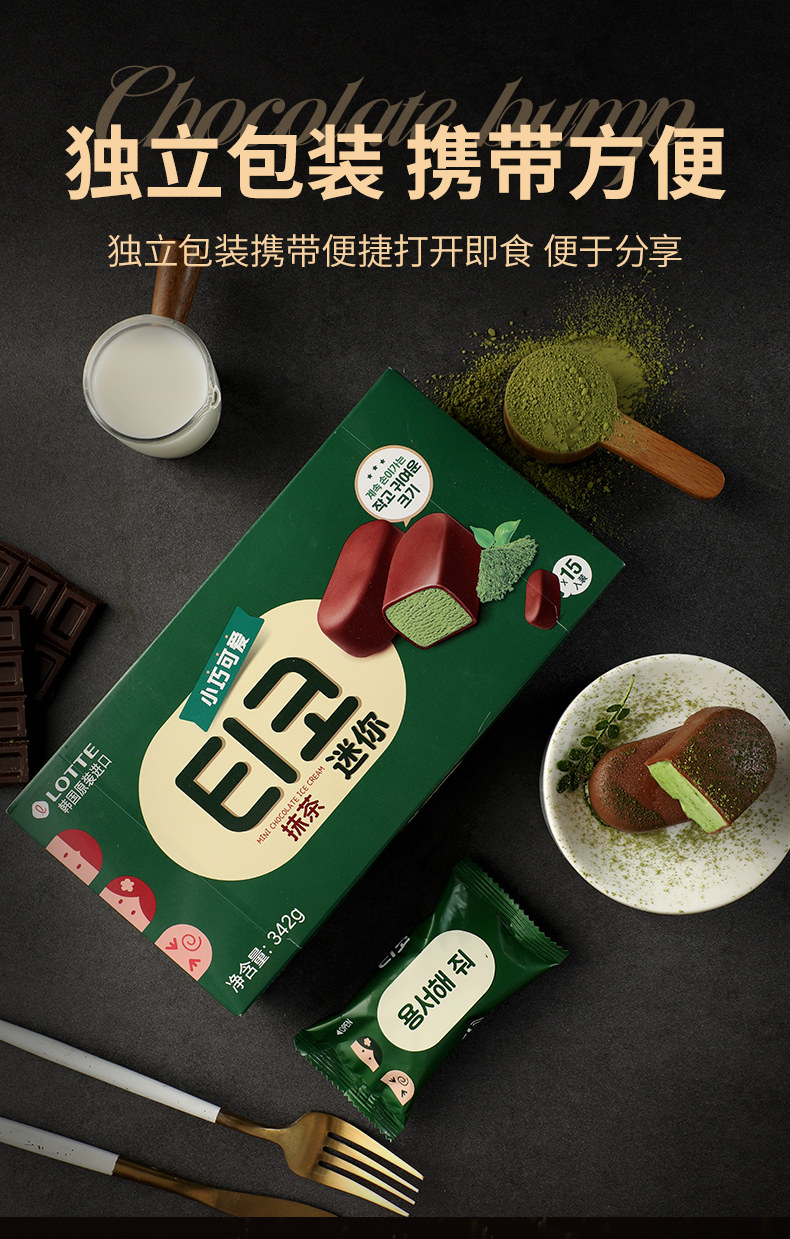 热卖!到手30粒,香醇丝滑!韩国进口 乐天 迷你抹茶/低糖巧克力/迷你牛奶/黑巧巧克力冰淇淋 雪糕 浓郁丝滑 342g/盒