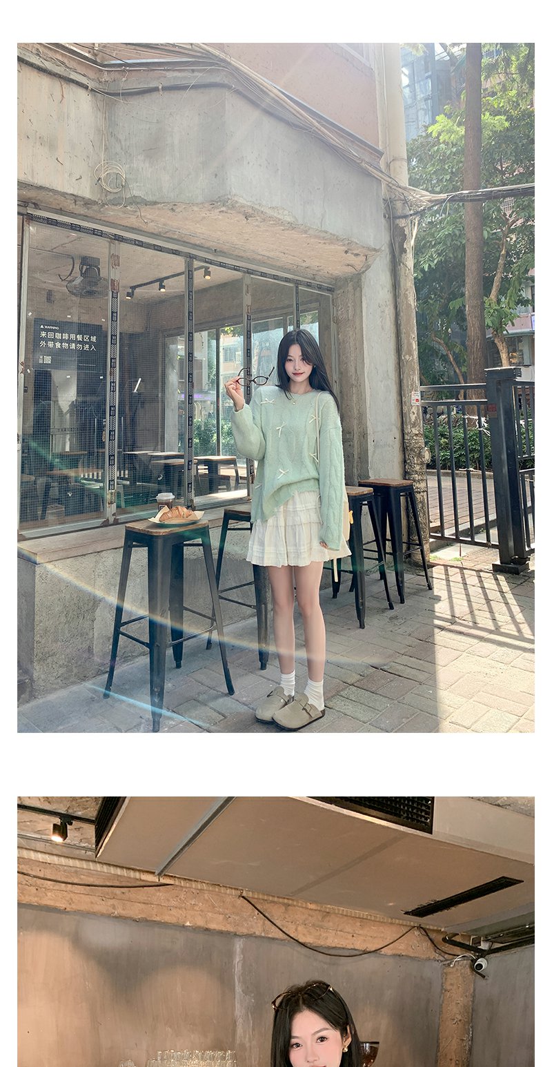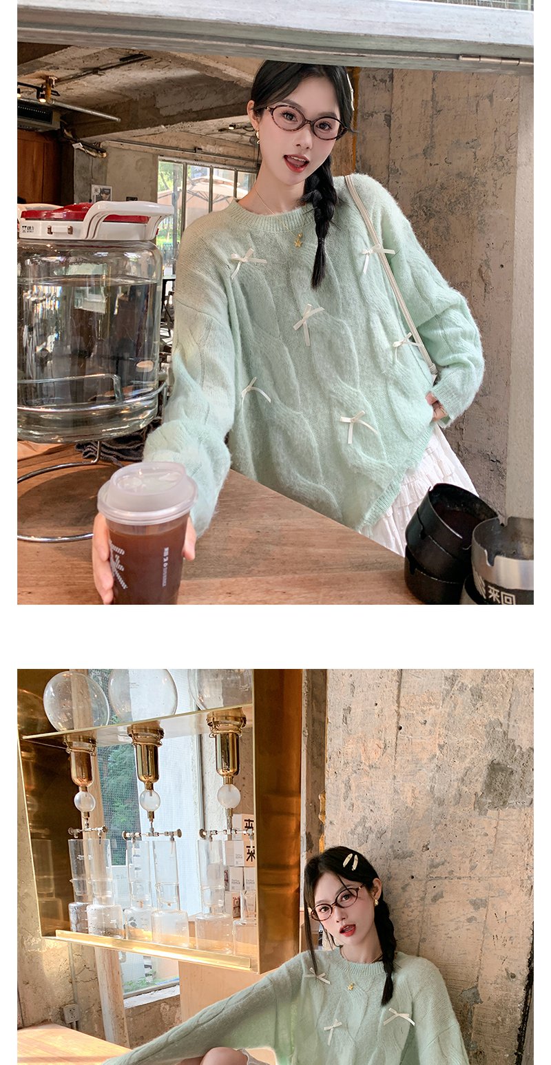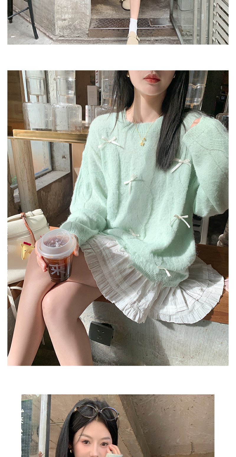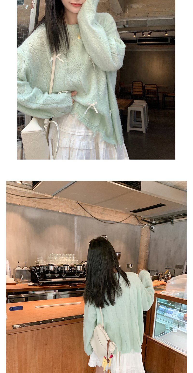 <曾小咸推荐>宽松套头蝴蝶结设计浅绿色针织衫