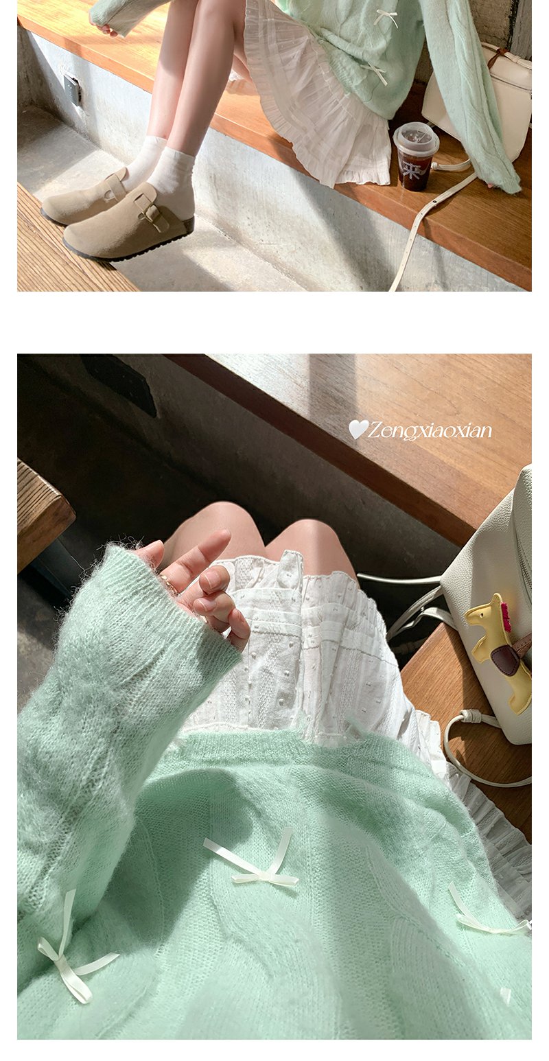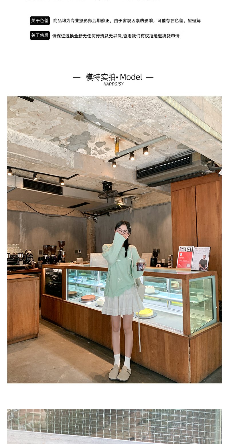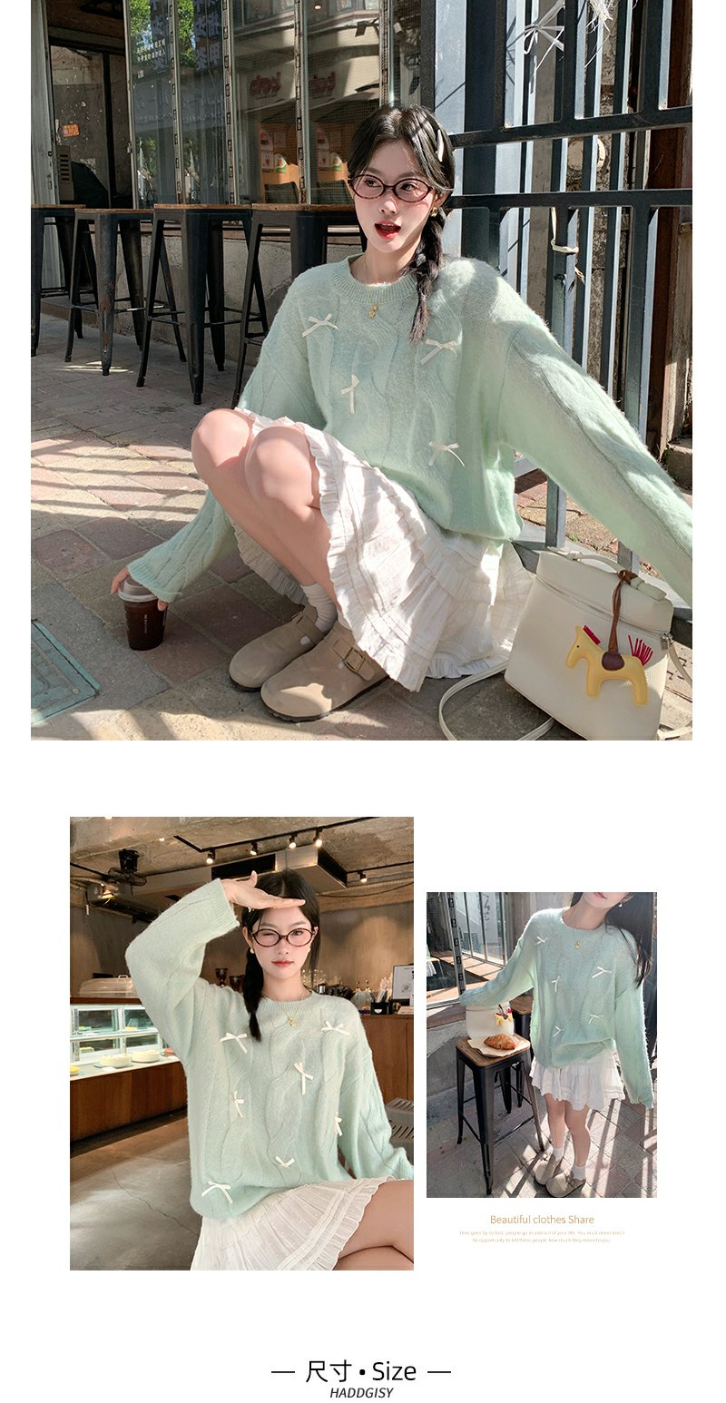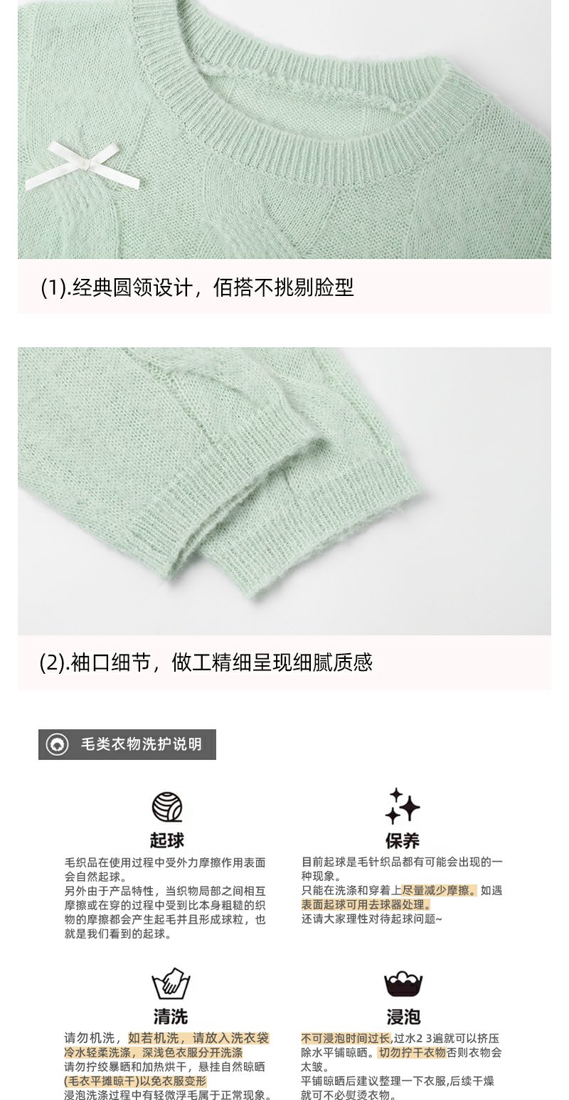 <曾小咸推荐>宽松套头蝴蝶结设计浅绿色针织衫