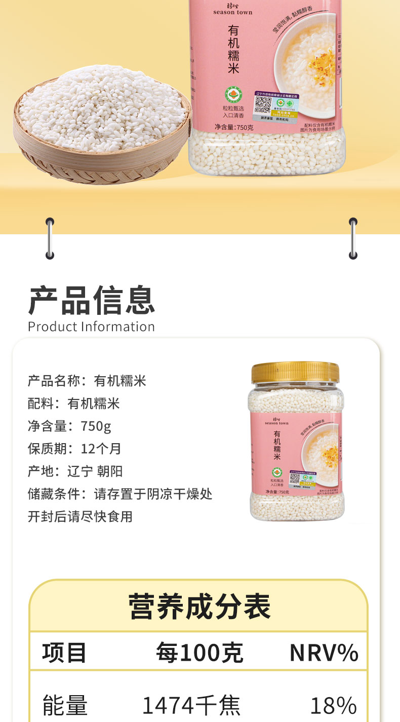 时令堂有机糯米750g