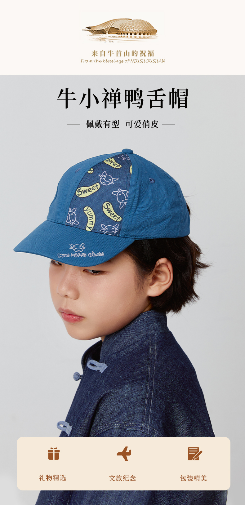牛首山文创牛小禅鸭舌帽儿童棒球帽小孩遮阳帽防晒金陵文旅纪念品