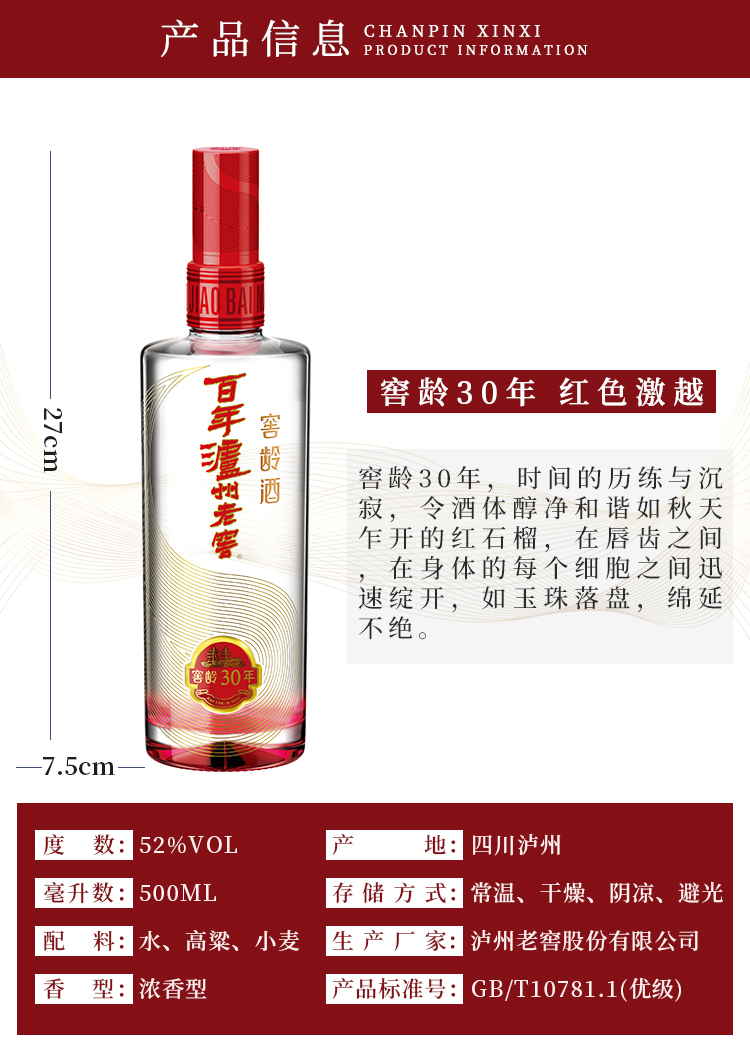 【泸州老窖】百年泸州老窖窖龄酒30年 52度500ml*6瓶 浓香型白酒-三明逸涵专属链接