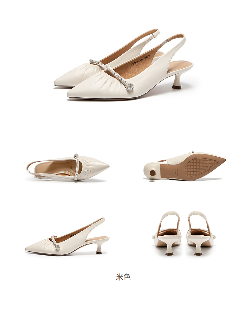 【静音系列】千百度羊皮珍珠带时装凉鞋女后空凉鞋A25282911