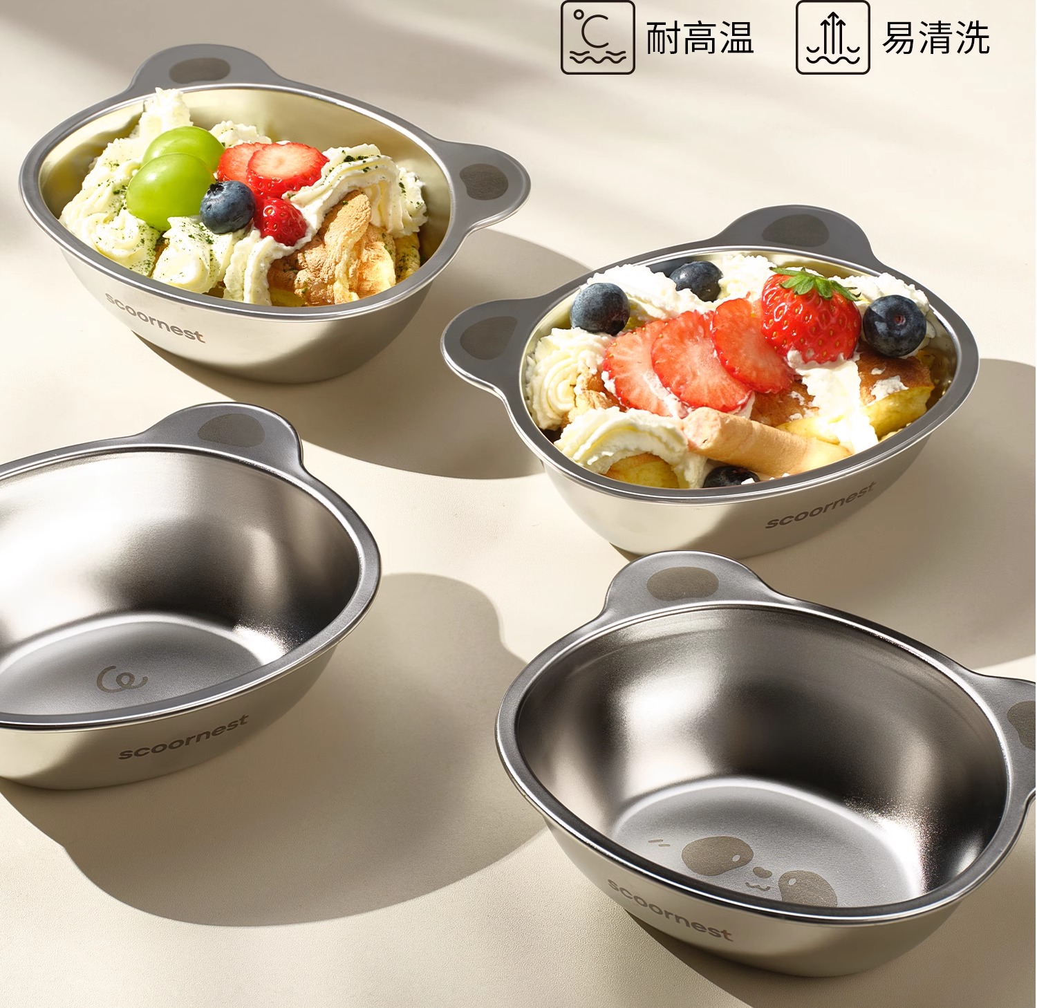 科巢儿童不锈钢碗316L宝宝个人专用辅食小碗喝汤饭碗家用餐具套装