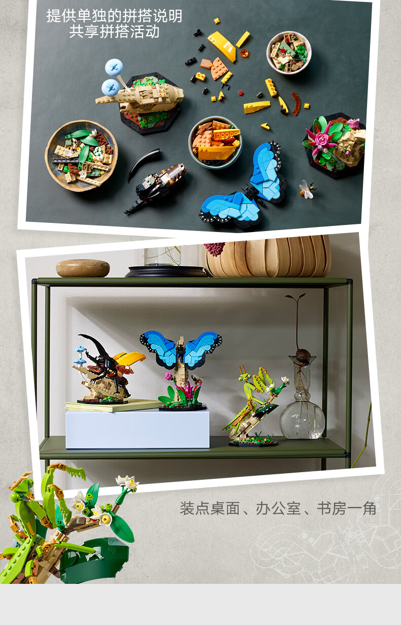 乐高积木L21342DOTS系列虫蝴蝶中华大刀螳