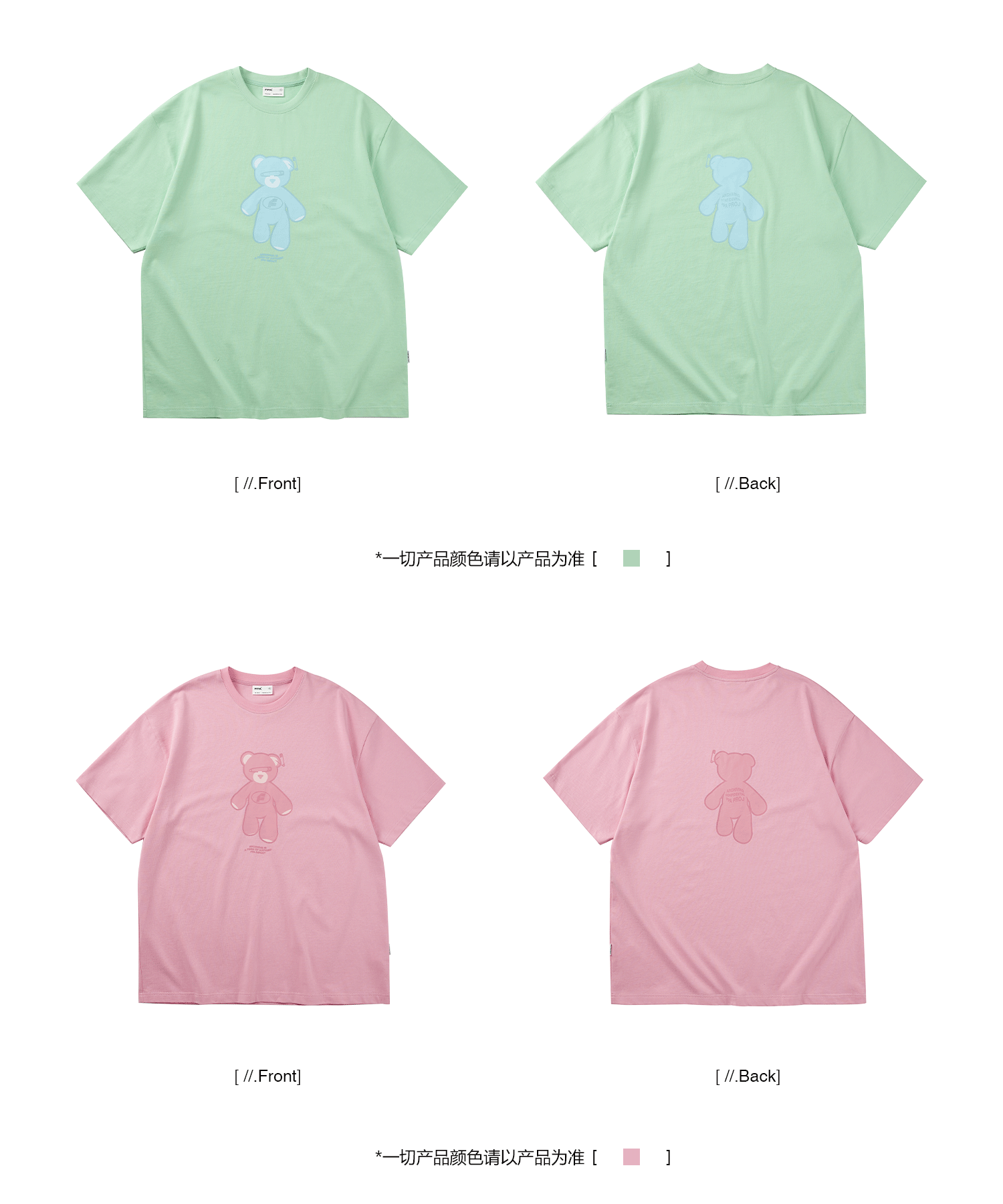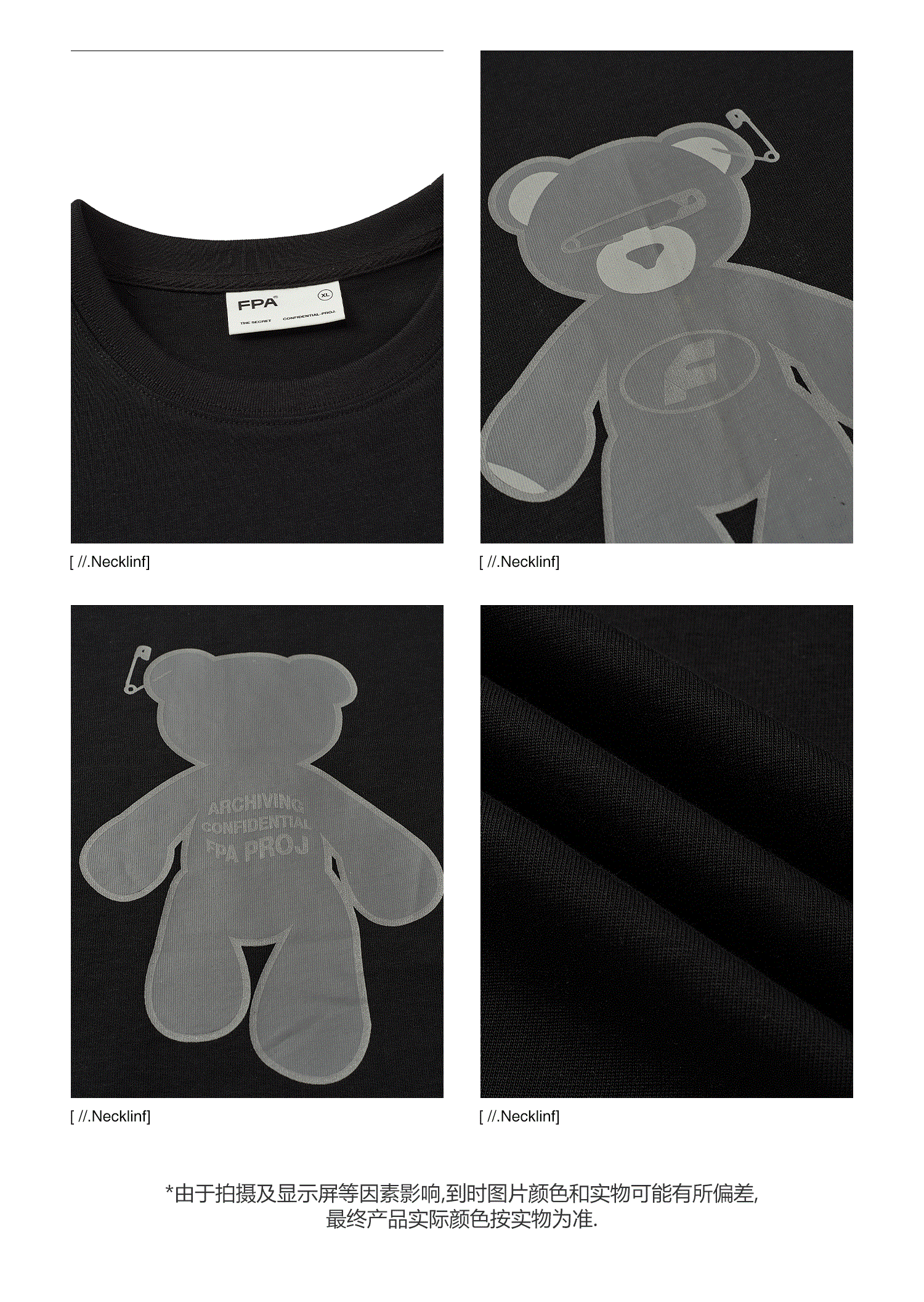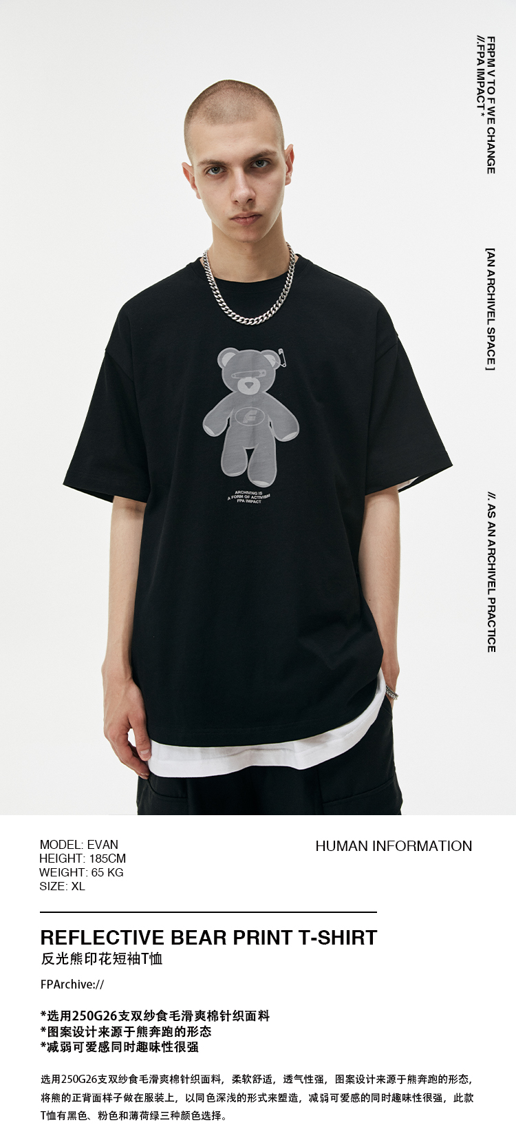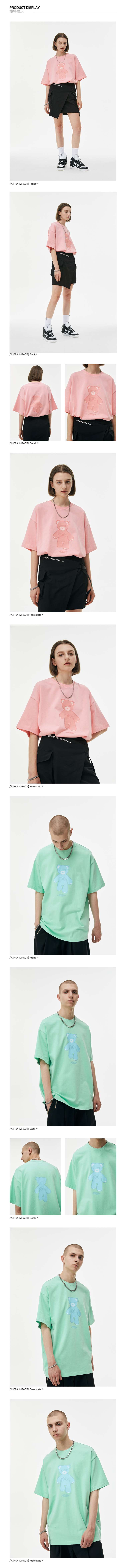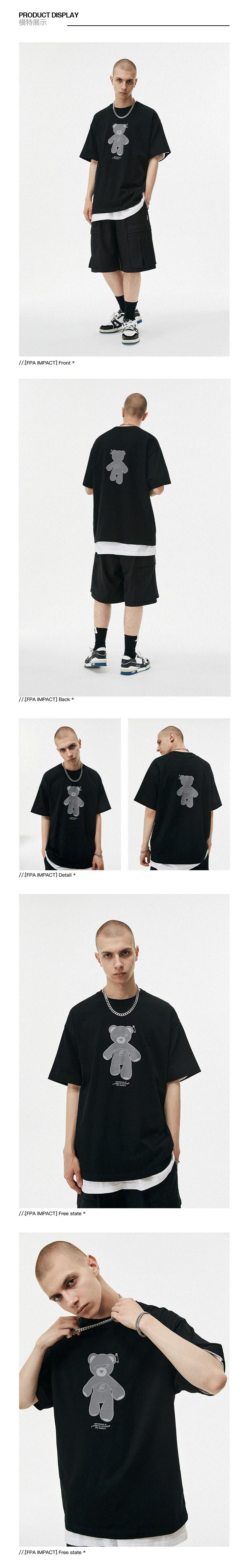 FPA(VENGETICE)反光小熊印花短袖T恤 国潮牌夏季情侣装宽松半袖男