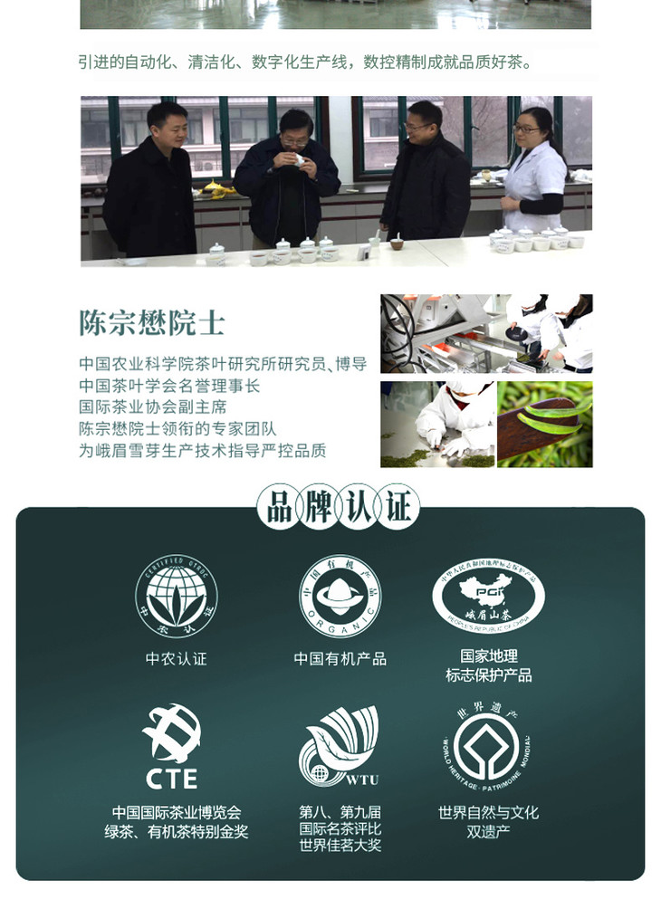 峨眉雪芽 绿茶 有机茶叶 雪霁禅心100克/盒 高山茶礼盒