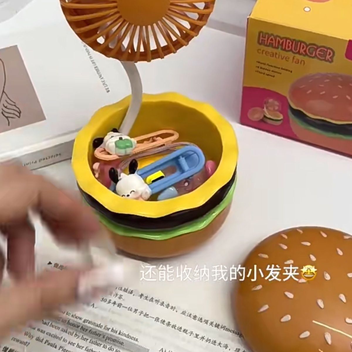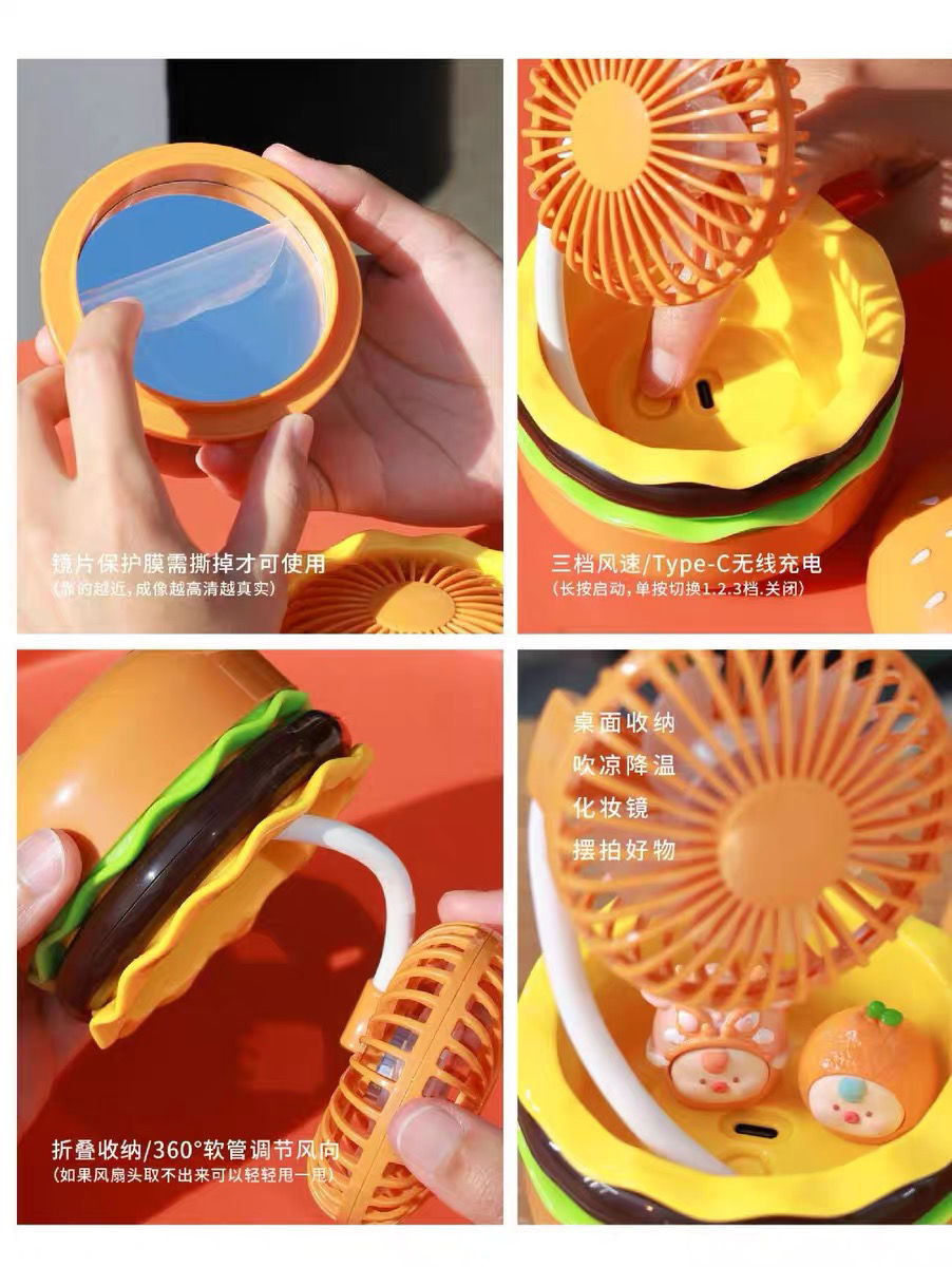 「“汉堡”小风扇!三档调节」儿童礼物趣味汉堡风扇 居家日用usb充电便携折叠收纳桌面迷你手持小风扇