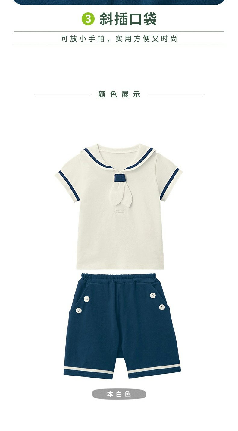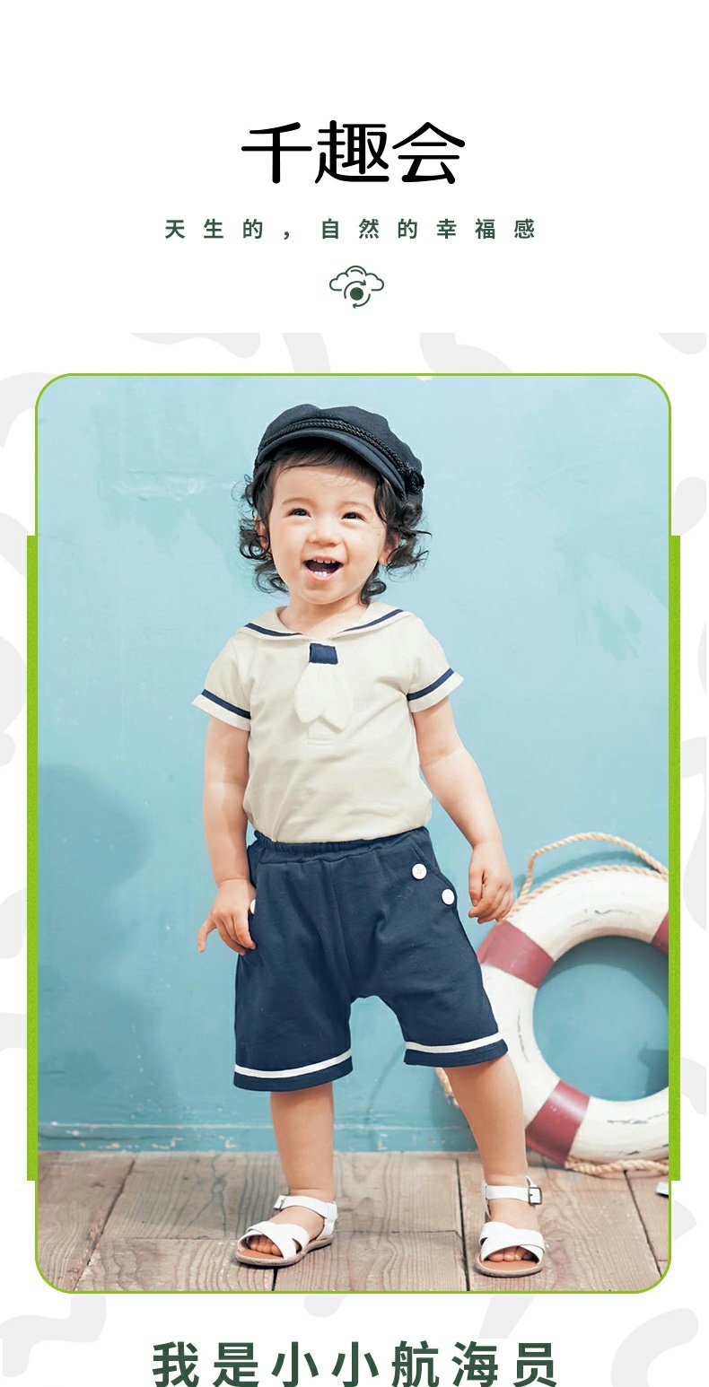 千趣会春夏婴幼儿衣服短袖T恤短裤海军风纯棉男宝宝外出套装