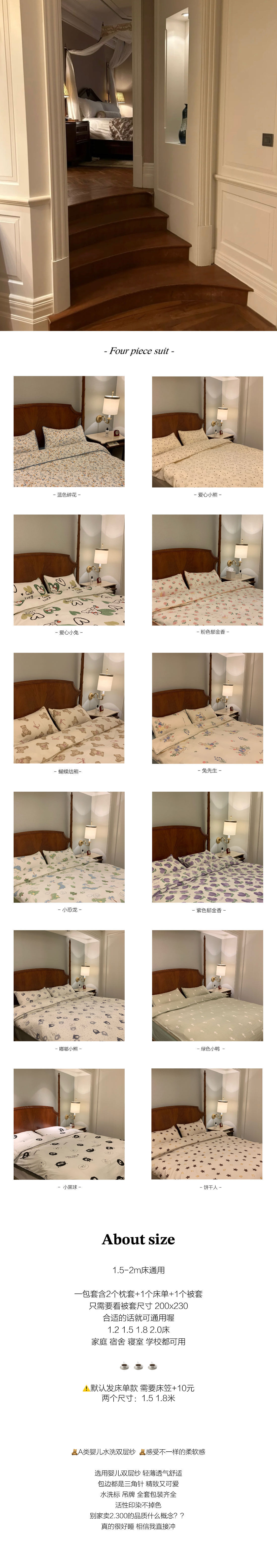 1.5m床笠款:被套200*230cm、床笠150*200cm、枕套48*74cm*2