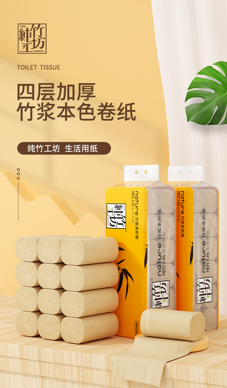 【自营】蓝漂纯竹工坊竹浆本色无芯卷纸 4层加厚960g/提卫生纸家用厕纸CZGF-0194