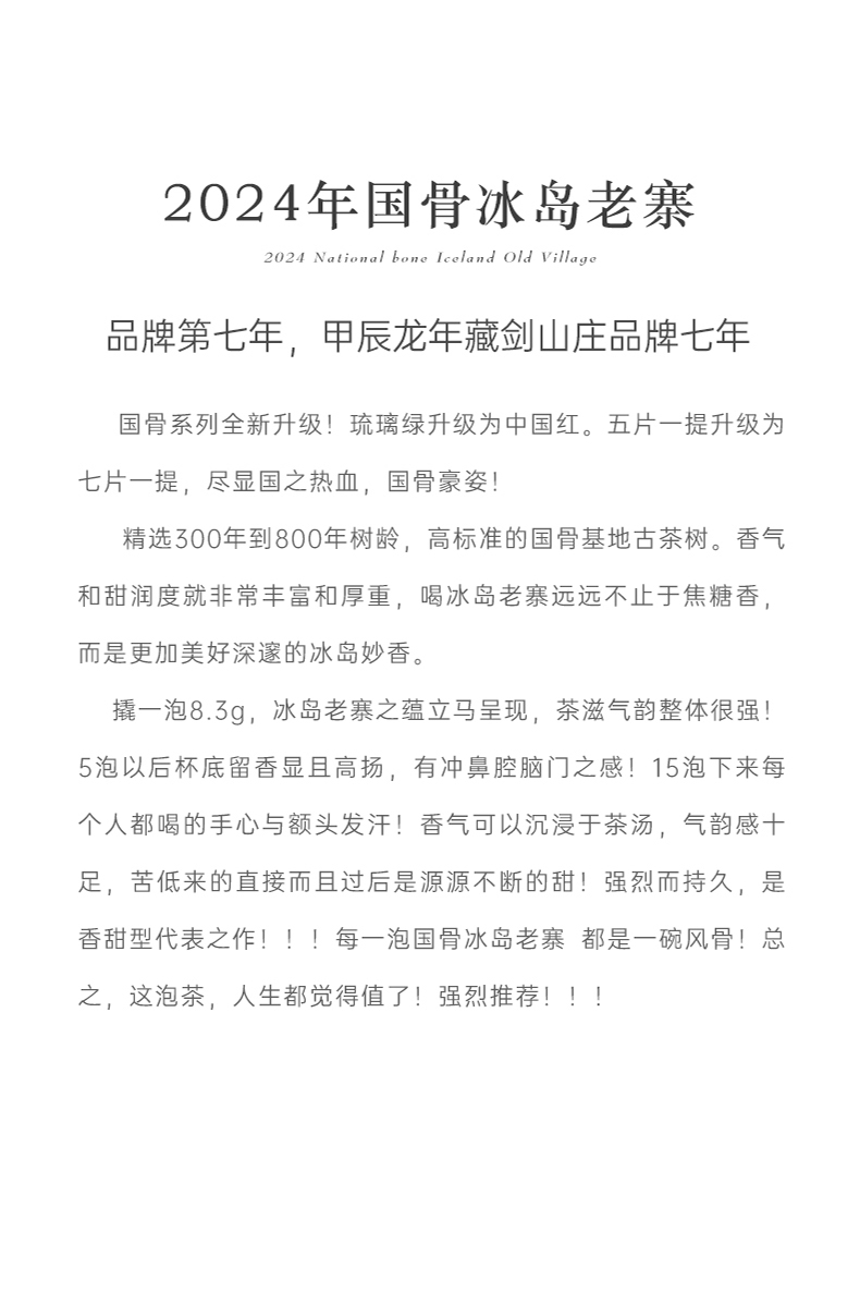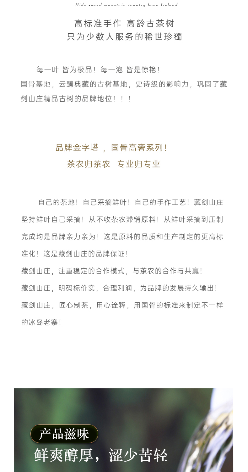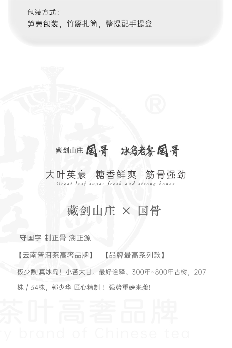 【藏剑山庄】云南普洱茶生茶 国骨系列2024春茶 媲美冰岛老寨茶王级!357克/片!