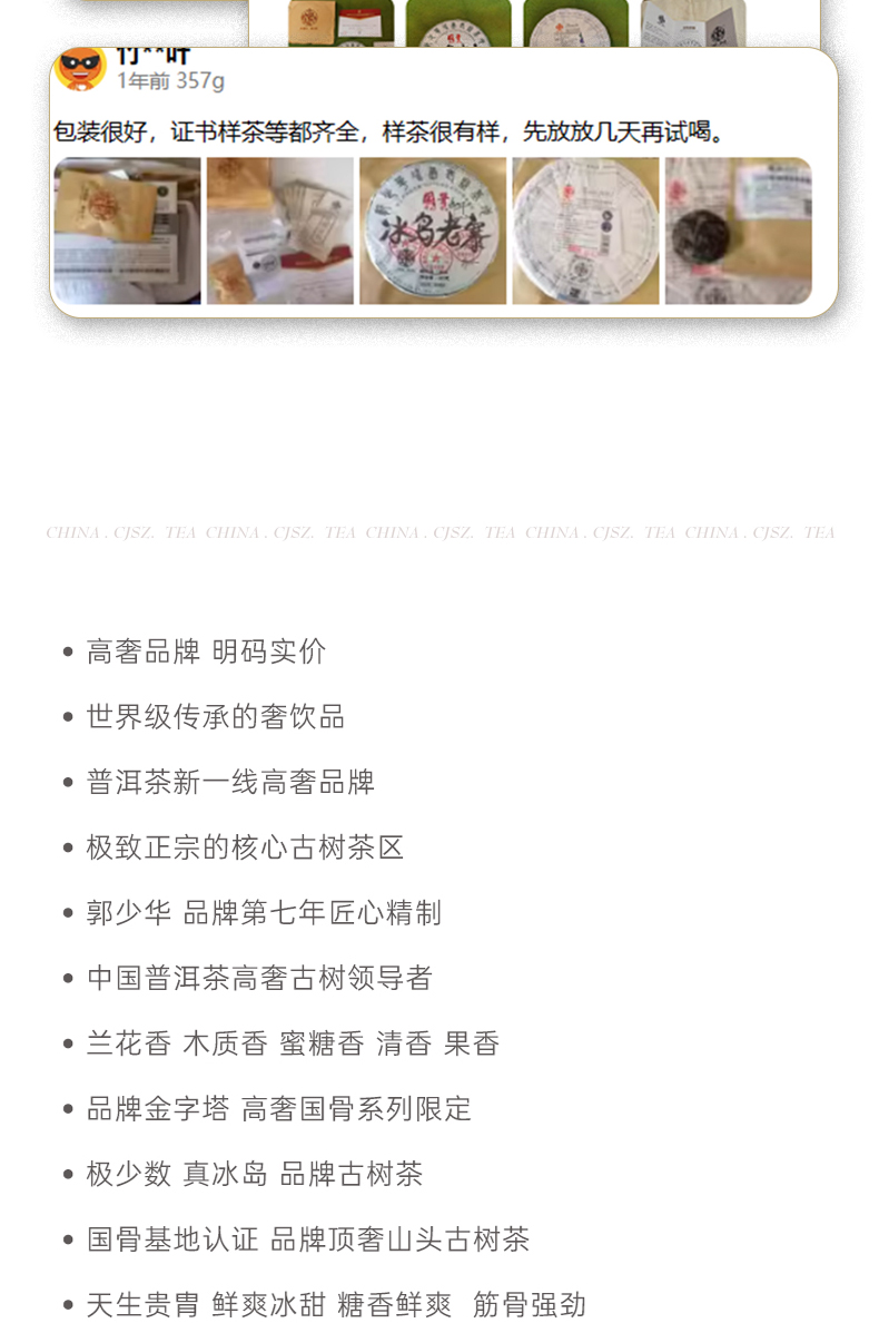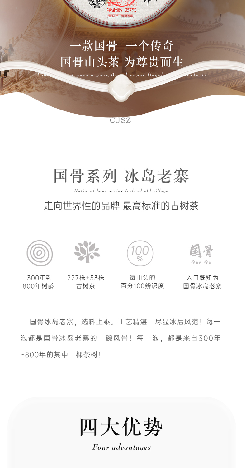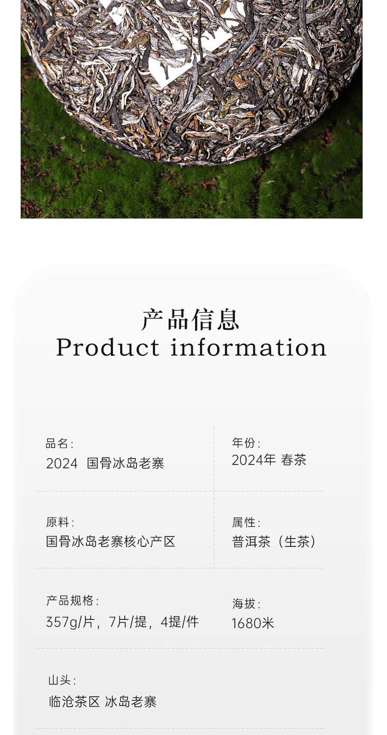 【藏剑山庄】云南普洱茶生茶 国骨系列2024春茶 媲美冰岛老寨茶王级!357克/片!