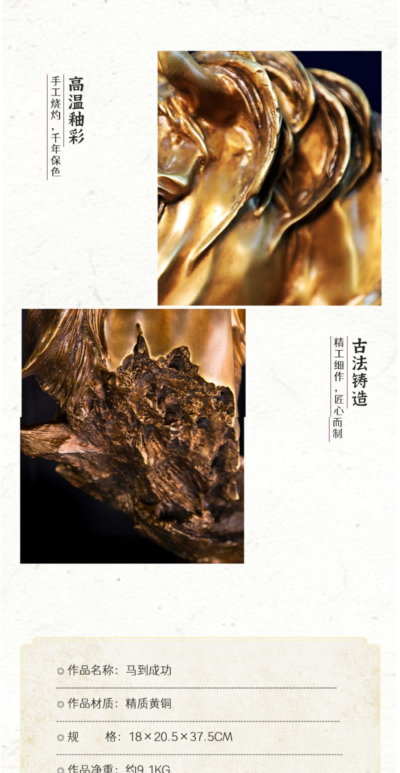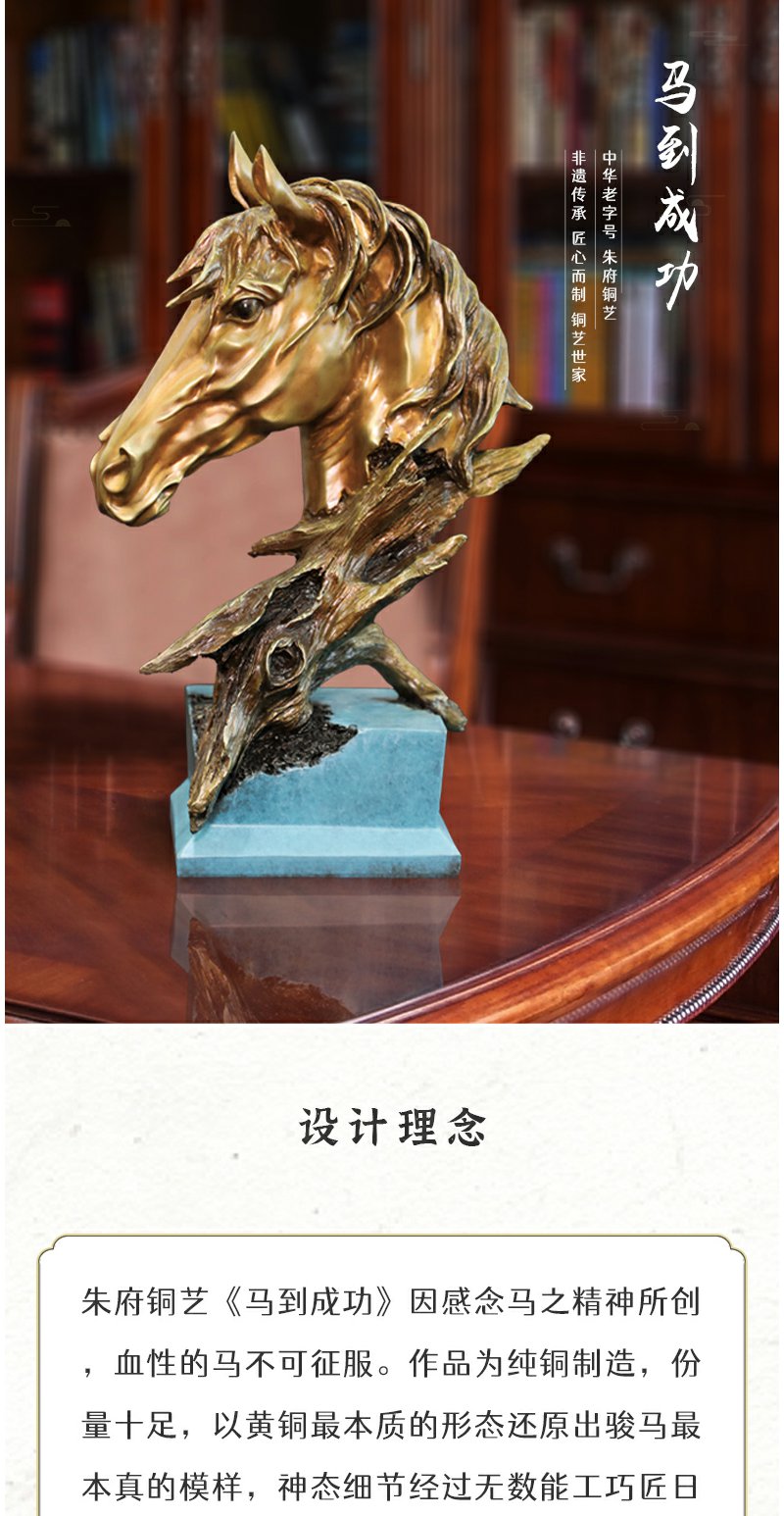 朱府铜艺《马到成功》全铜生肖马头摆件铜艺术品客厅玄关高端摆件