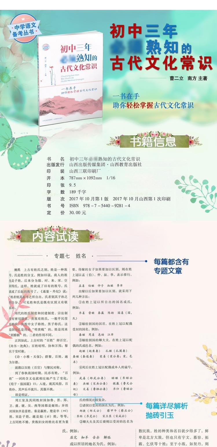 初中三年熟知的古代文化常识 古代文学 中国传统文化